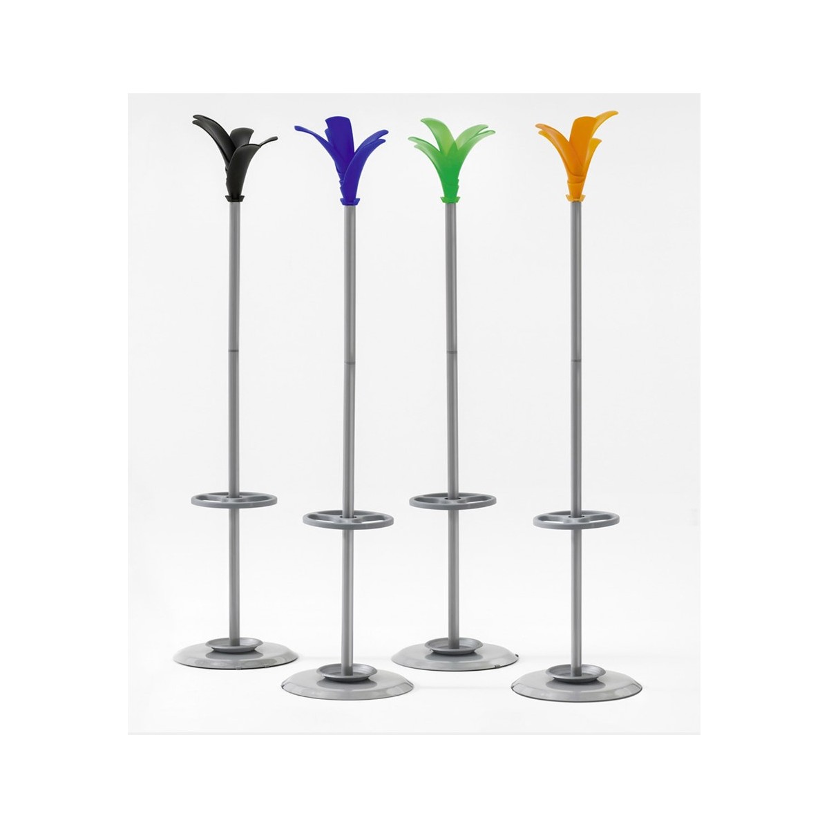 Appendiabiti a colonna PETALO - MILANI verniciato grigio alluminio con ganci portabiti in plastica. .