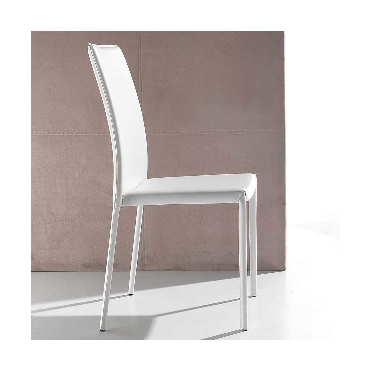 Seduta in Similcuoio PVC: La seduta della sedia è realizzata in similcuoio PVC, un materiale resistente e facile da pulire. Disponibile in diverse varianti di colore tra cui Bianco, Nero, Titanio, Sabbia, il similcuoio PVC offre un aspetto elegante e una sensazione piacevole al tatto.