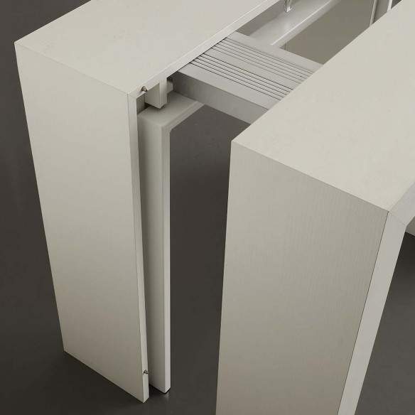 La struttura presenta un sostegno centrale integrato in metallo verniciato bianco, che conferisce maggiore stabilità e supporto, anche nelle configurazioni più allungate.
