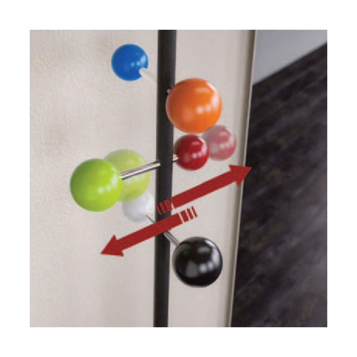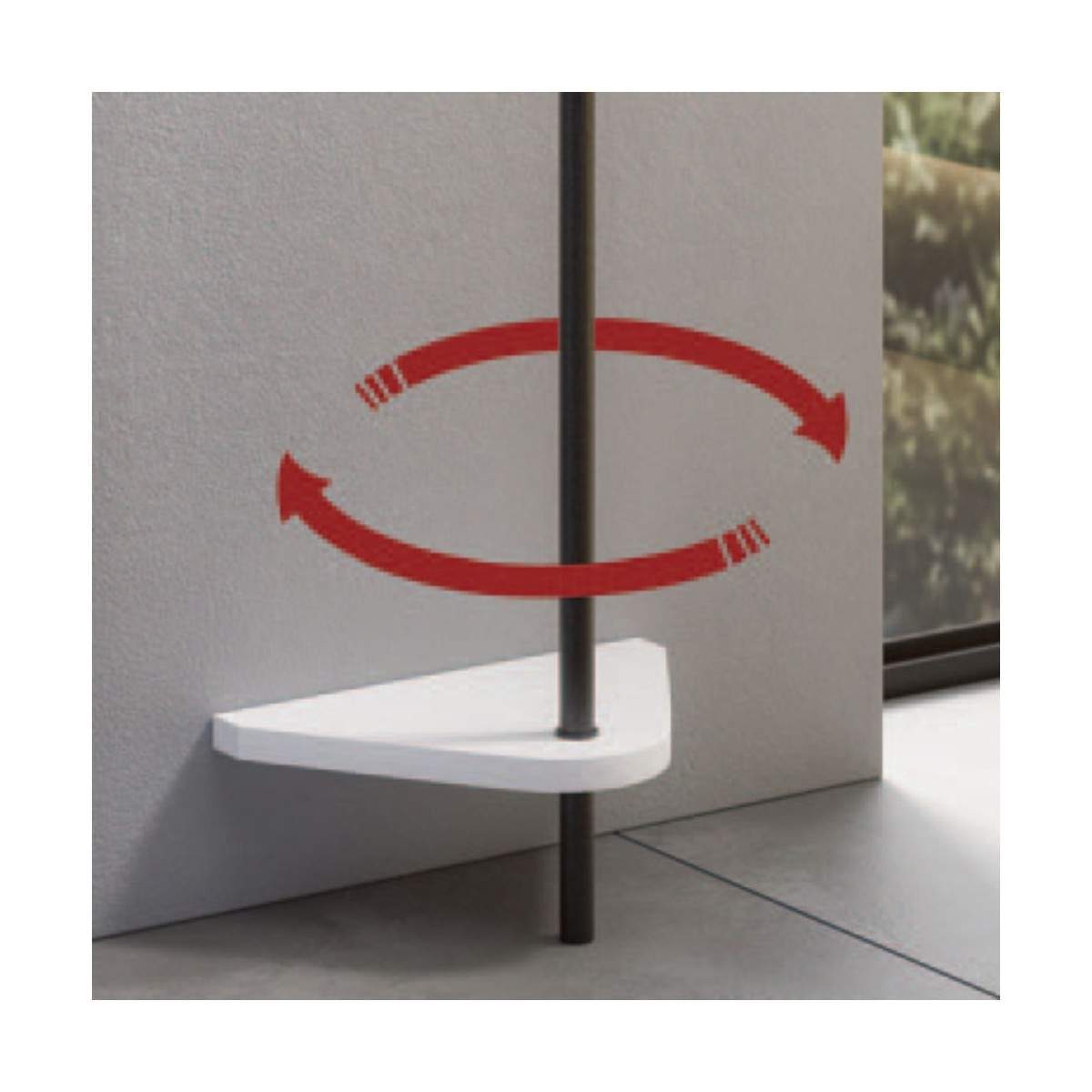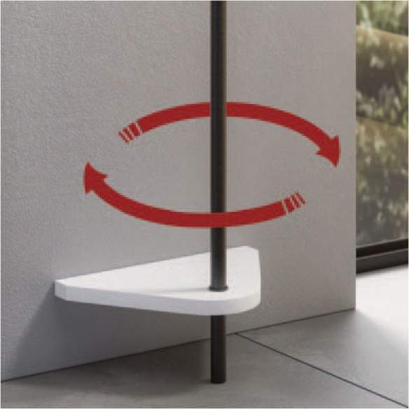 Il suo segno distintivo è l’asta ruotante in metallo verniciato, che permette di gestire gli spazi in modo dinamico e funzionale.