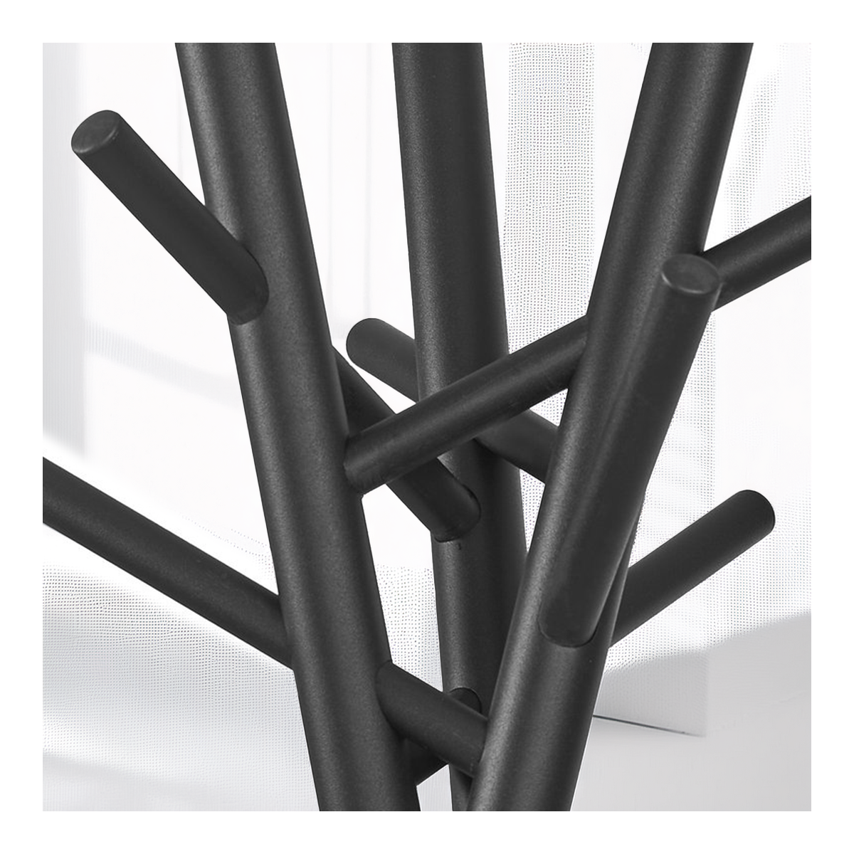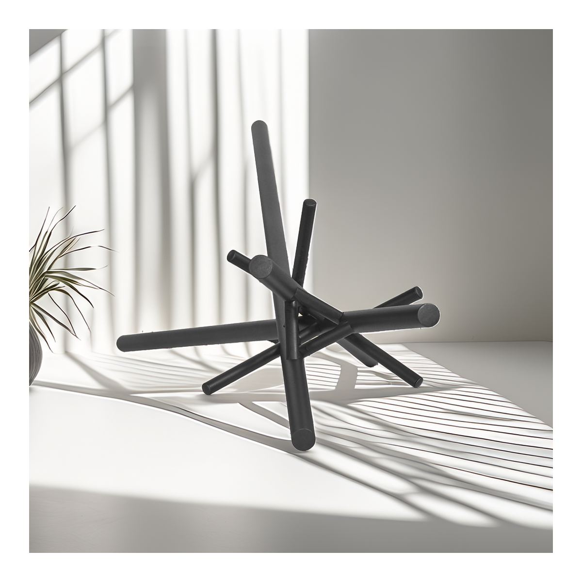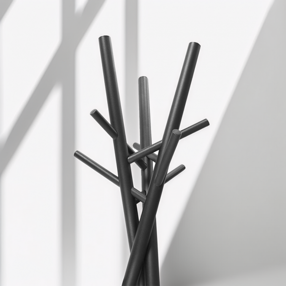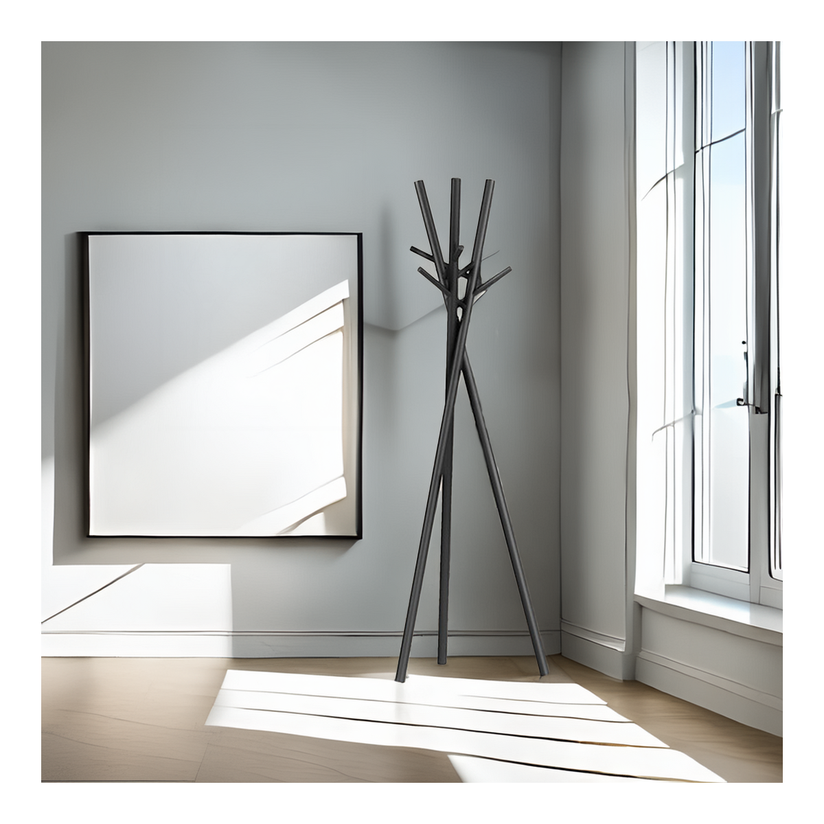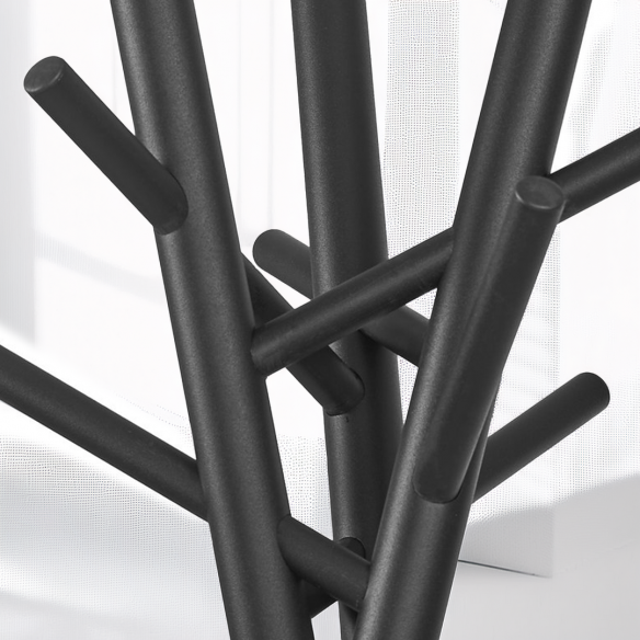Il punto di forza di questo appendiabiti è il particolare sistema di incastro degli steli e dei rami, che consente di ottenere una struttura solida senza necessità di saldature o giunzioni superflue. Questa soluzione innovativa non solo garantisce la stabilità, ma conferisce anche un aspetto pulito e minimalista, che si adatta facilmente a diversi tipi di arredamento.