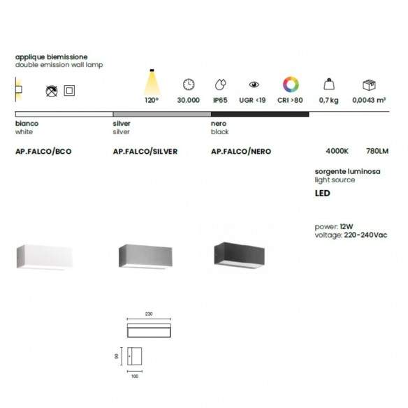 FALCO – Applique da esterni a doppia emissione in ABS e policarbonato