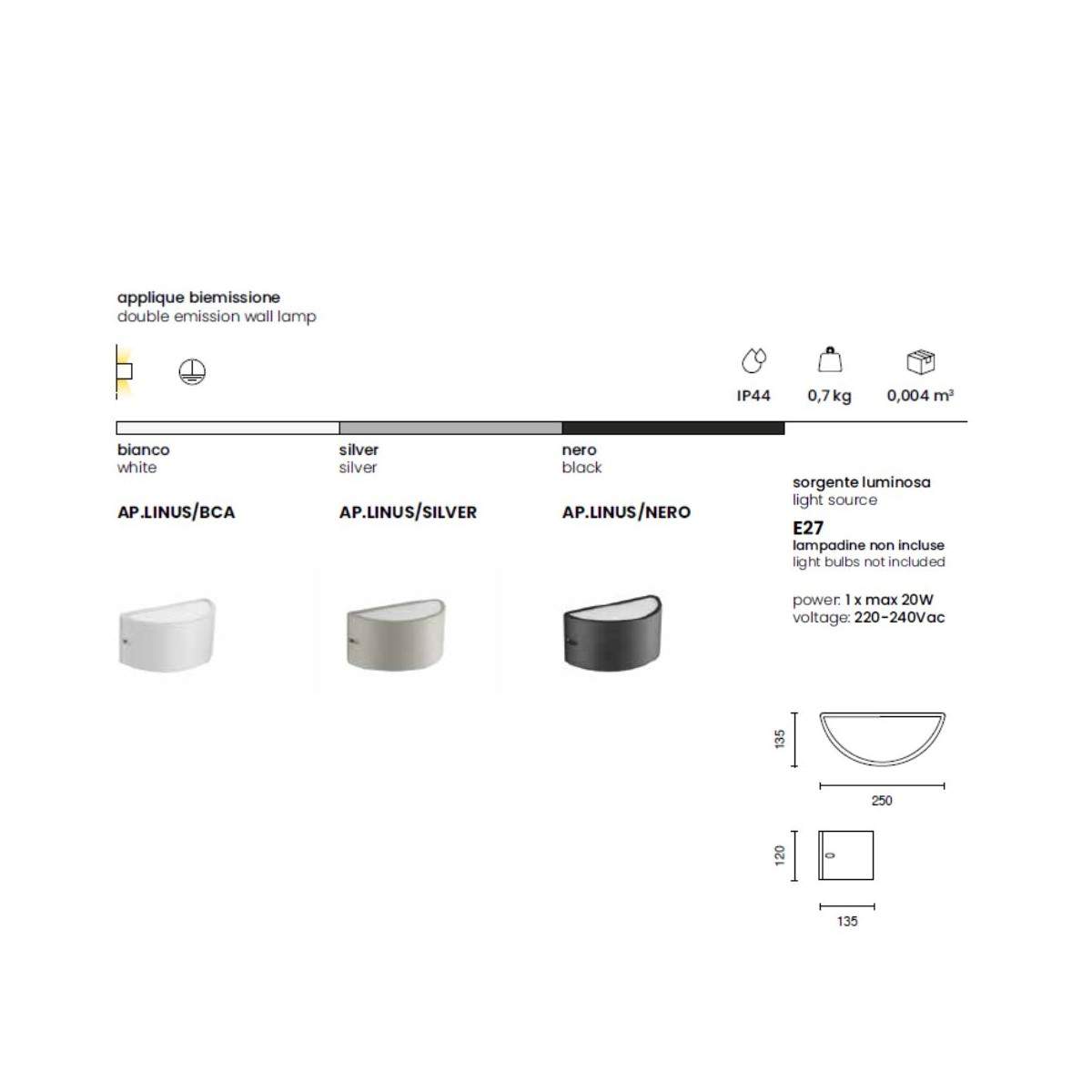 LINUS è un’applique da esterni che unisce funzionalità e design moderno. La struttura in alluminio garantisce resistenza agli agenti atmosferici, mentre il diffusore in policarbonato diffonde la luce uniformemente, creando un’illuminazione confortevole sia verso l’alto che verso il basso.