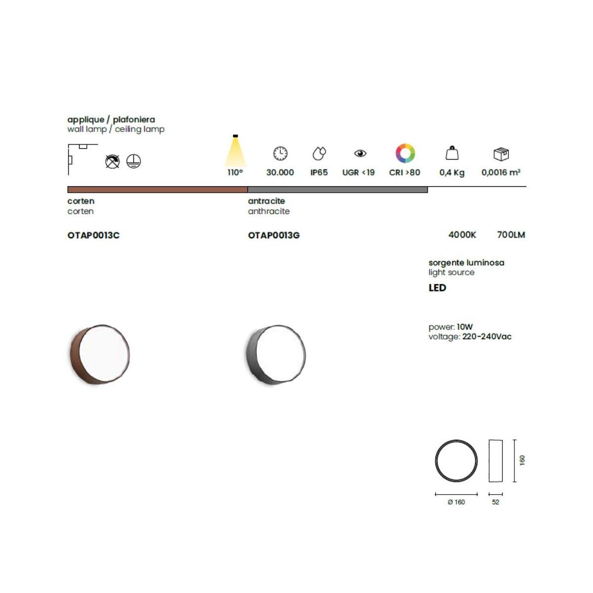 Utilizzabile come applique o plafoniera.