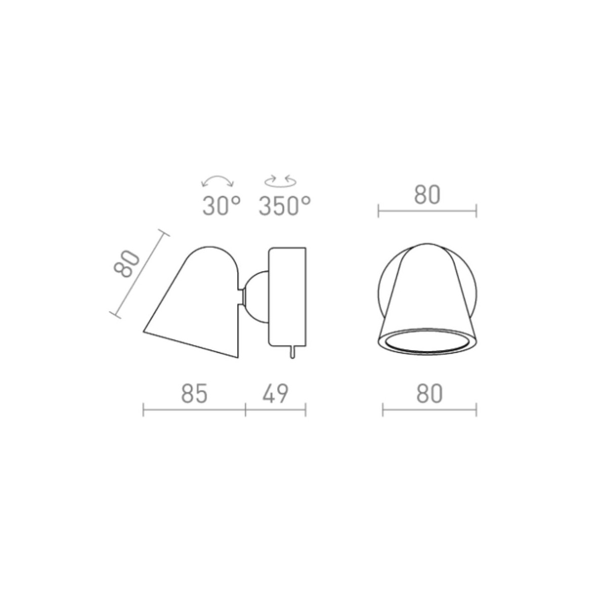 Con un diametro di 8 cm e un’altezza di 9 cm, STIG è compatta ma efficace, mentre l’angolo di inclinazione di 90° e la rotazione di 350° permettono di orientare la luce esattamente dove serve, rendendola ideale per lettura, illuminazione puntuale o valorizzare particolari ambientali. Una soluzione pratica, elegante e versatile.