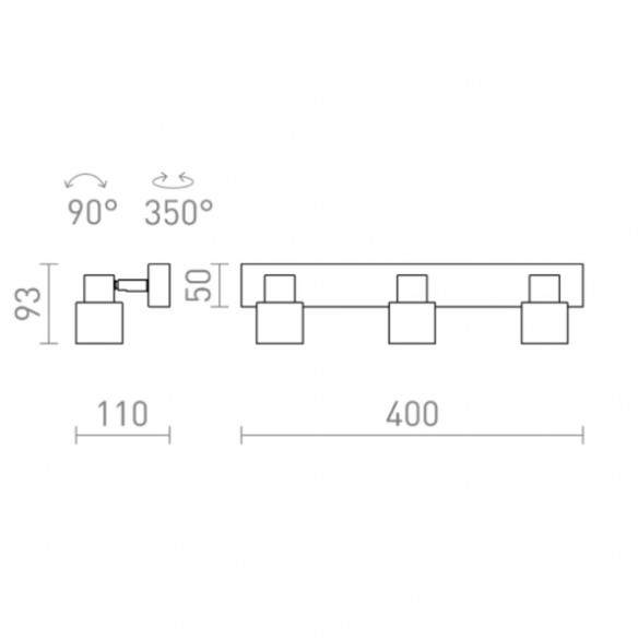 Applique VALTO con riflettori reclinabili per sorgenti luminosi LED con base GU10.