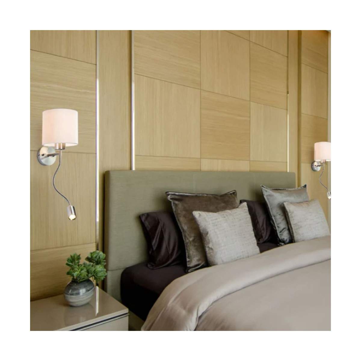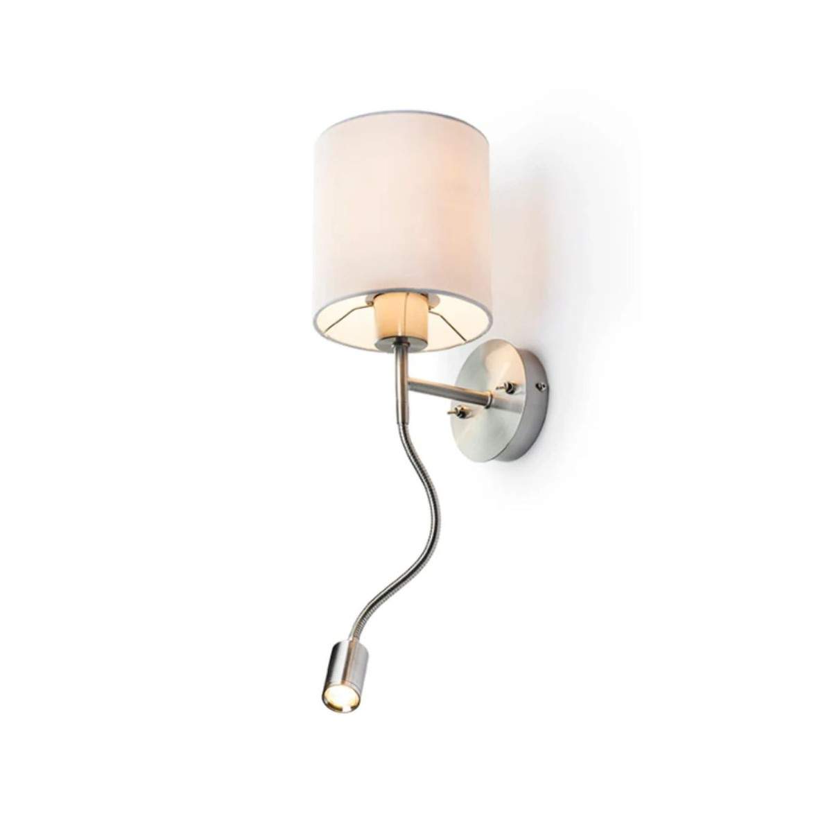 L’applique VERSA unisce eleganza e funzionalità in un’unica soluzione pensata per chi desidera gestire la luce in modo intelligente. Il paralume in tessuto crea un’illuminazione morbida e accogliente, perfetta per dare atmosfera alla stanza, mentre il collo flessibile con LED integrato offre un fascio luminoso diretto, ideale per leggere o illuminare con precisione un punto specifico.