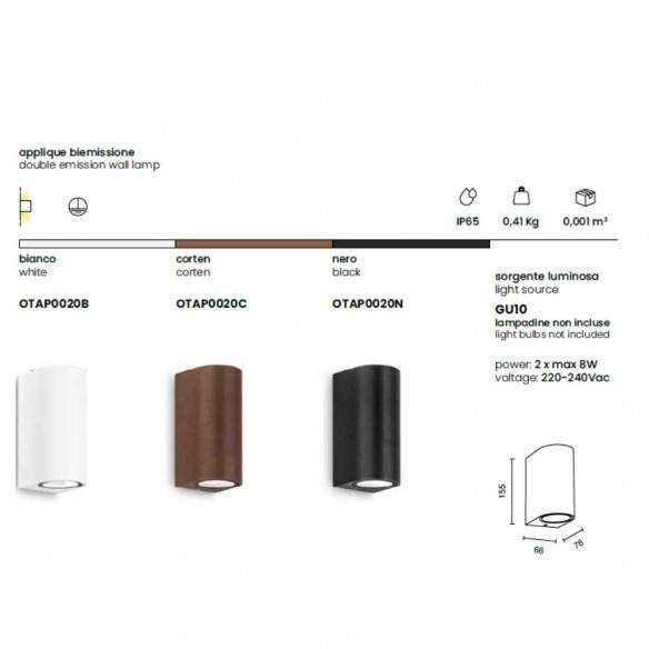 La sorgente luminosa è predisposta per lampadine GU10 (non incluse), offrendo la libertà di scegliere la temperatura di colore più adatta alle proprie esigenze.
