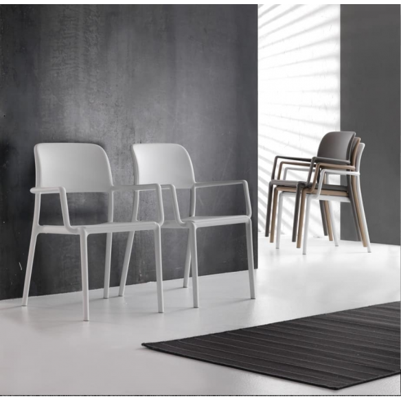 Aggiungi stile e comfort al tuo spazio esterno con la Poltroncina in resina rinforzata con fiberglass de "La Seggiola", un'elegante e resistente aggiunta disponibile in una varietà di colori per soddisfare ogni gusto e stile.