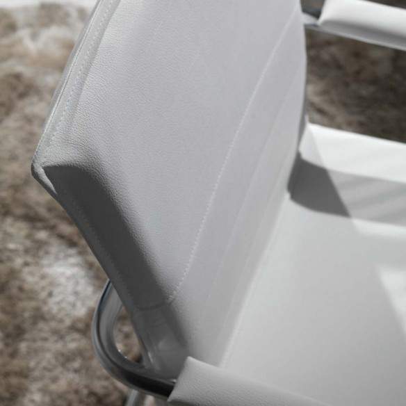 Materiali di Qualità: La struttura della poltrona è realizzata in metallo cromato, che offre resistenza e durabilità, oltre a conferire un aspetto luminoso e riflettente. La seduta è rivestita in ecopelle, disponibile nelle varianti bianca e nera. L'ecopelle offre un aspetto simile al cuoio, ma è più facile da pulire e mantenere nel tempo.