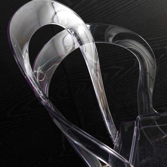 Materiali di Qualità: La sedia è realizzata in policarbonato trasparente, un materiale resistente e moderno che offre trasparenza e leggerezza al design.