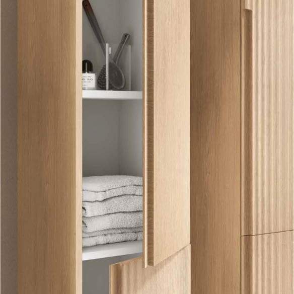 La colonna reversibile RIGHE è pensata per offrire massima funzionalità in poco spazio, grazie a una mensola centrale fissa e due mensole mobili che consentono di organizzare al meglio asciugamani, prodotti per il bagno o oggetti decorativi. Tutte le mensole sono realizzate in nobilitato resistente, per un utilizzo duraturo nel tempo.