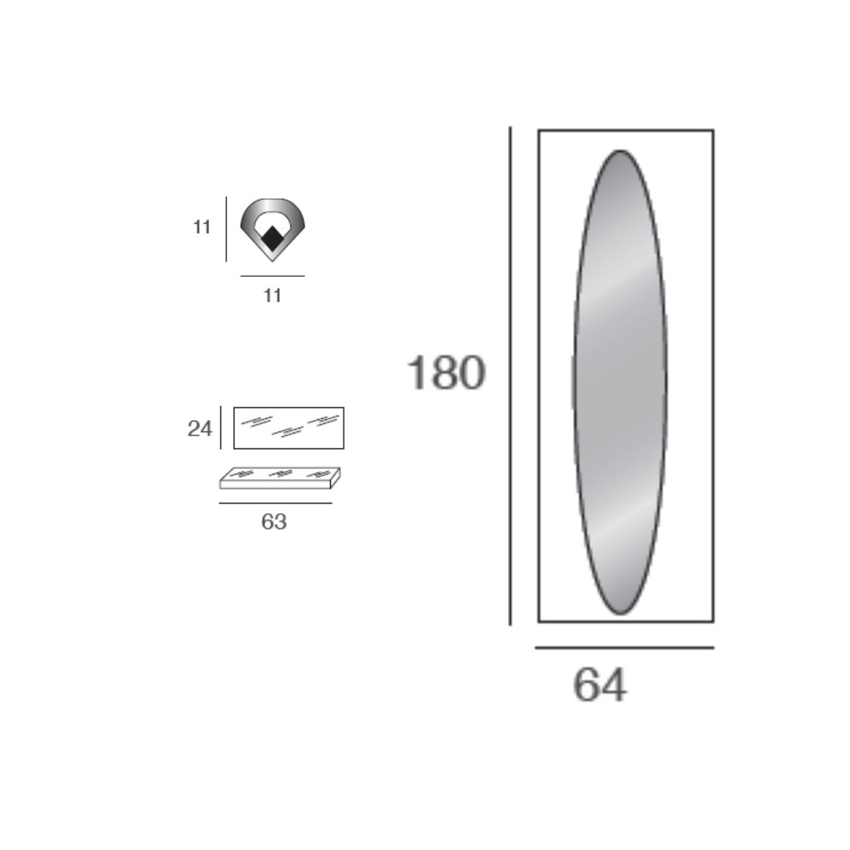 Family F01 è un elegante pannello appendiabiti sospeso a parete, perfetto per ingressi di piccole dimensioni, corridoi o disimpegni. Con una larghezza di 64 cm e un'altezza di 180 cm, questo mobile compatto offre un comodo specchio ovale a figura intera, ideale per un'ultima occhiata prima di uscire, e due ganci cromati per appendere giacche, cappotti e sciarpe.
