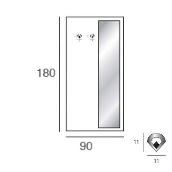 • Specchio: altezza 168 cm, larghezza 32 cm