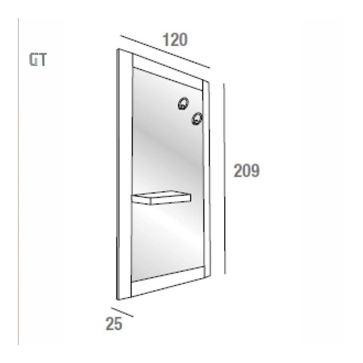 Realizzata in Bianco Frassino impiallacciato, si distingue per il suo aspetto chiaro e materico, che richiama le venature leggere del legno naturale, donando luce e armonia all’ambiente. Il grande specchio verticale allunga visivamente lo spazio e lo rende più arioso, mentre i due appendini integrati sono ideali per tenere a portata di mano borse, giacche o accessori quotidiani.
