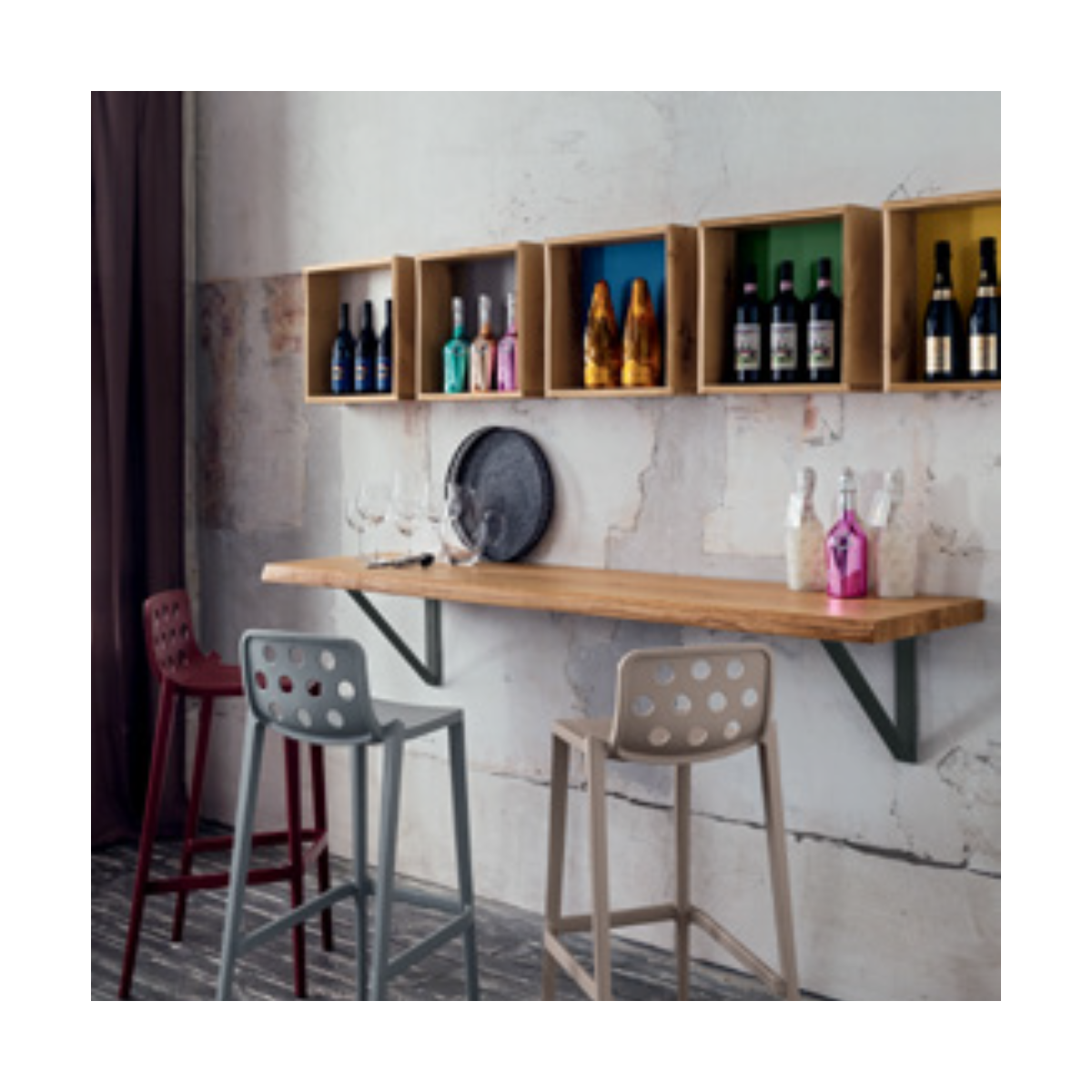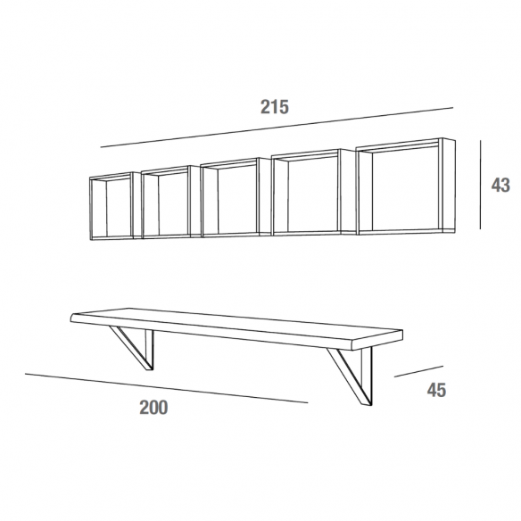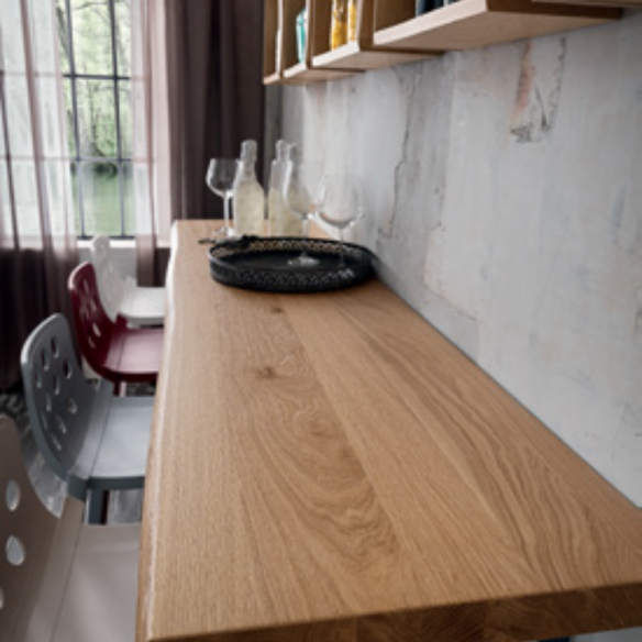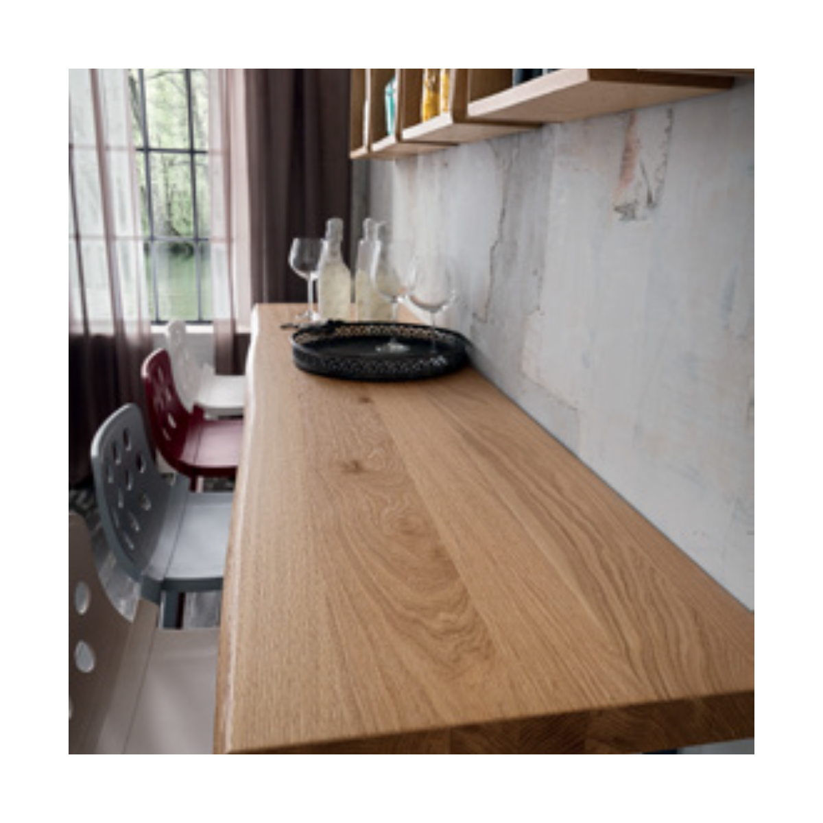 A completare l'insieme, il mensolone scortecciato in rovere da 2 metri e la coppia di supporti aggiungono funzionalità e solidità, permettendo di sfruttare al meglio lo spazio senza rinunciare al design.