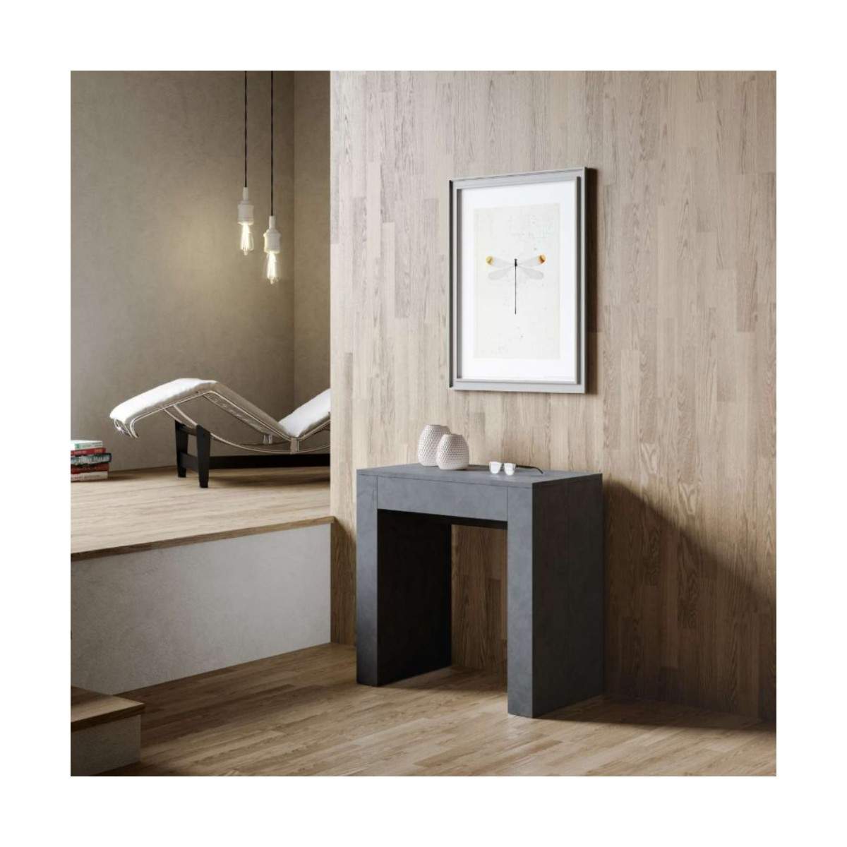 Una volta che la consolle è chiusa, le allunghe trovano posto all’interno della struttura della consolle.