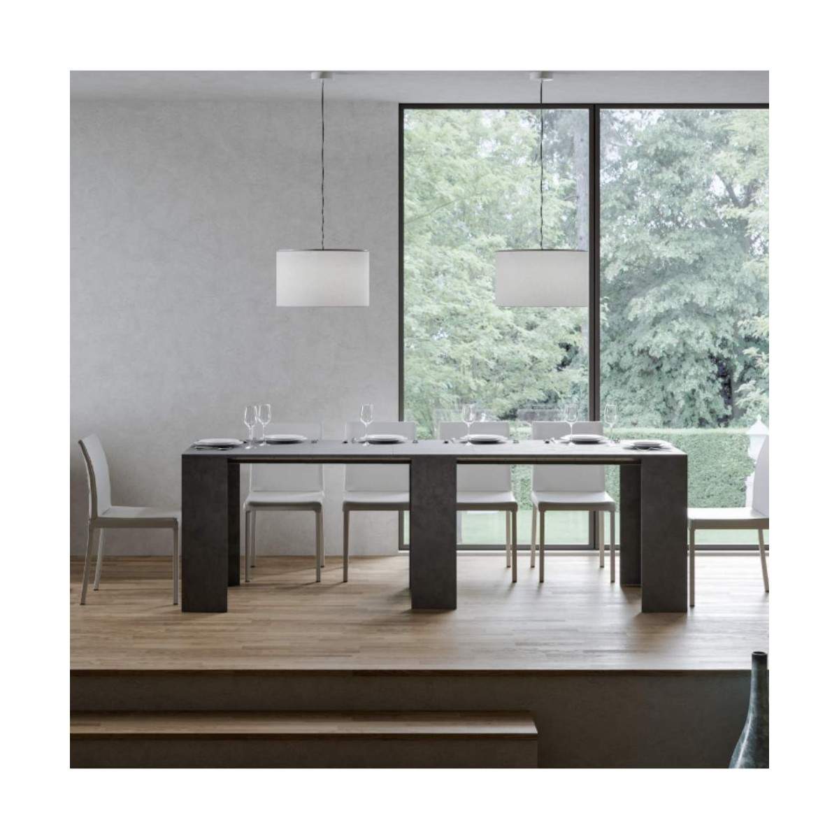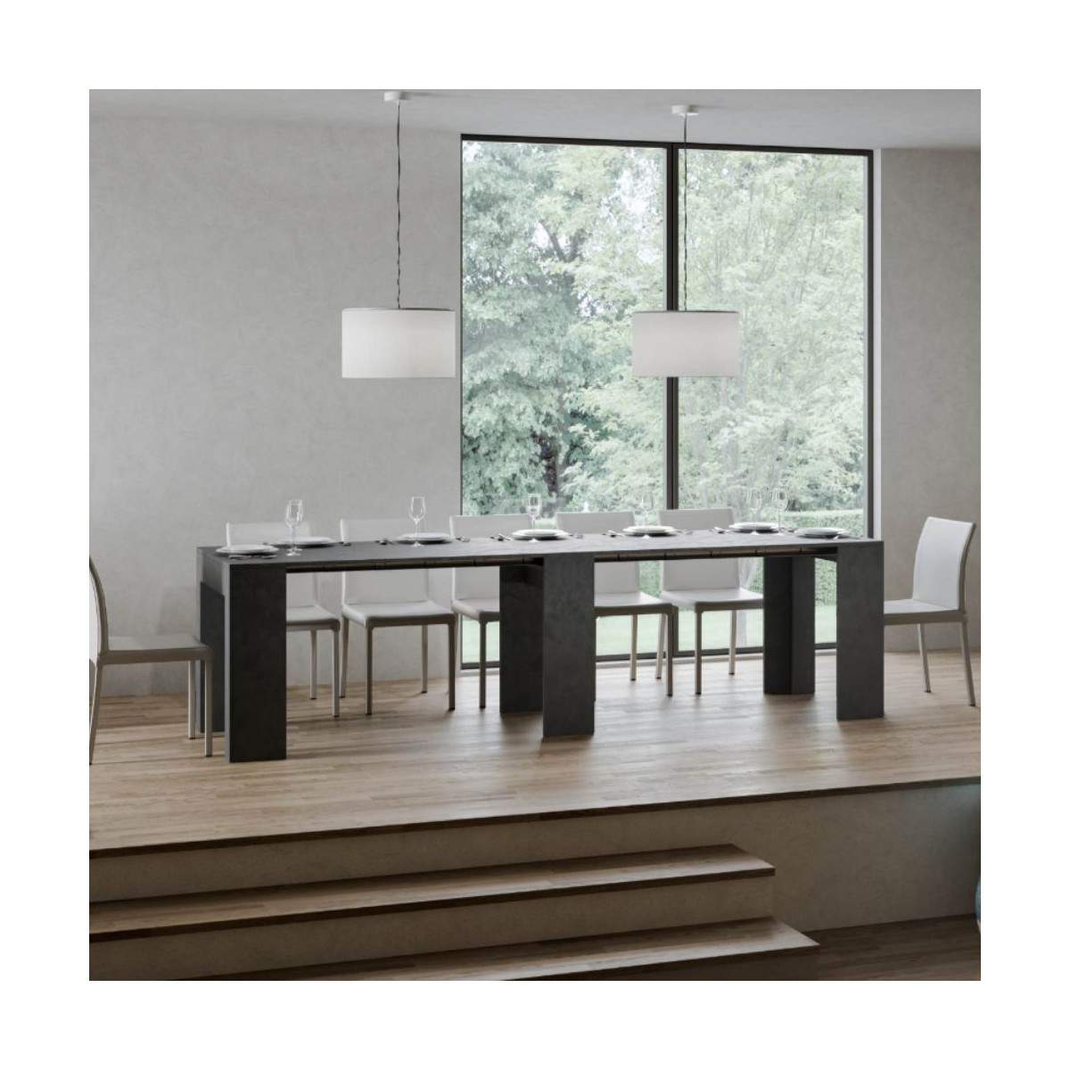 Un dettaglio che fa la differenza: tutte le allunghe trovano posto all’interno della struttura della consolle, garantendo ordine, praticità e un ingombro minimo quando non in uso.