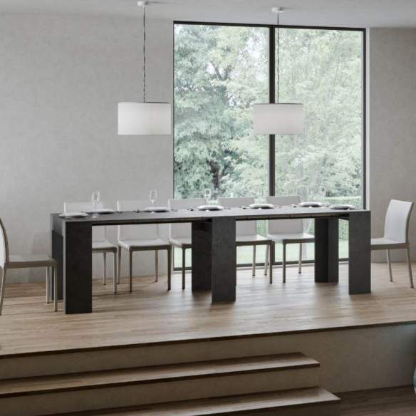 Compatta da chiusa, con 78 cm di larghezza, 47 cm di profondità e 80 cm di altezza, si trasforma con facilità in un tavolo lungo fino a 299 cm, ideale per accogliere comodamente ospiti e vivere momenti conviviali.