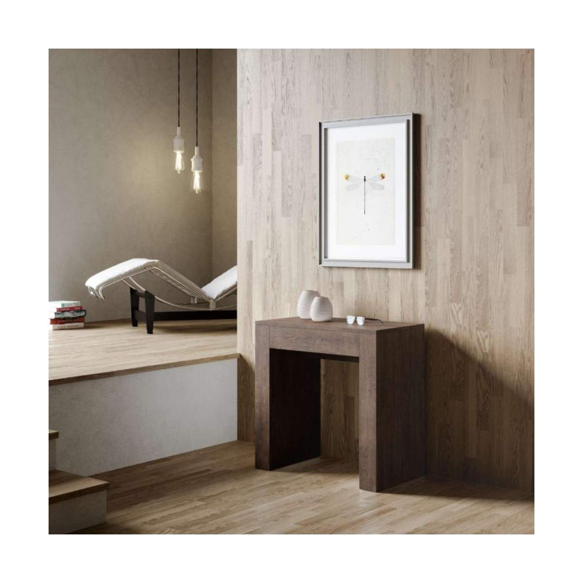 Una volta che la consolle è chiusa, le allunghe trovano posto all’interno della struttura della consolle.