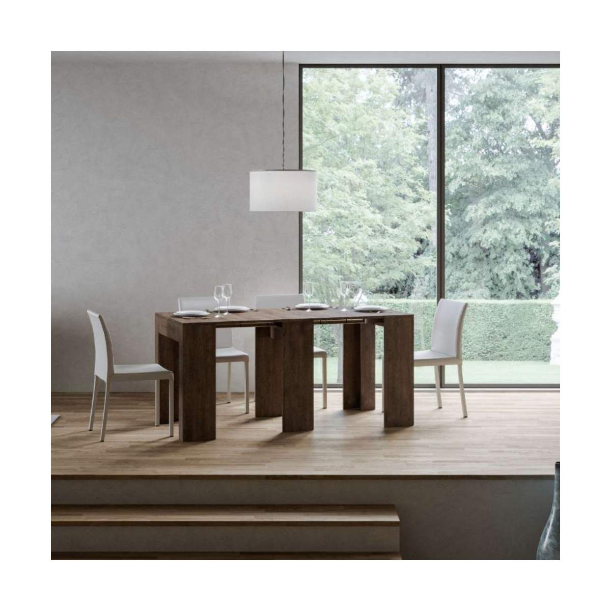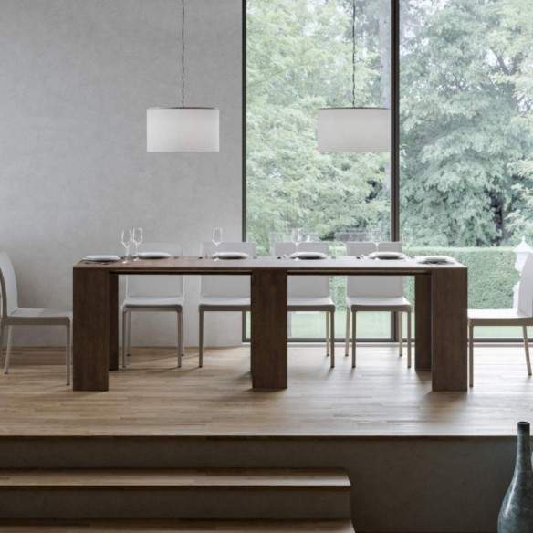 Un dettaglio che fa la differenza: tutte le allunghe trovano posto all’interno della struttura della consolle, garantendo ordine, praticità e un ingombro minimo quando non in uso.