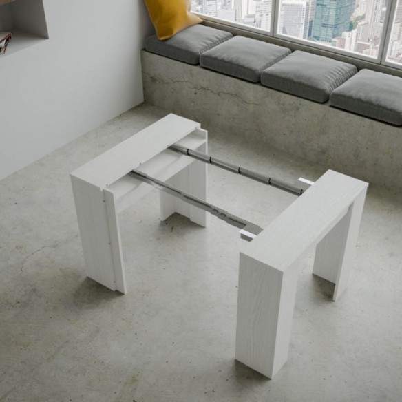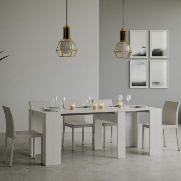 Compatta da chiusa (90 cm di larghezza, 48 cm di profondità, 77 cm di altezza), può estendersi fino a 308 cm, offrendo tutta la superficie necessaria per accogliere amici e familiari in occasione di cene o momenti conviviali.