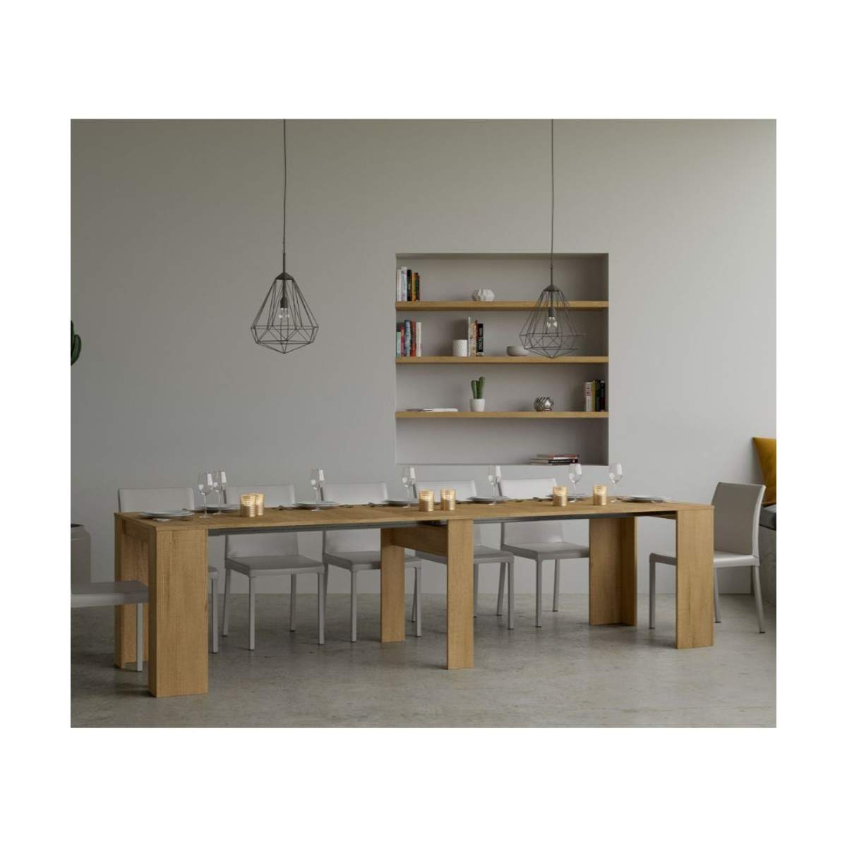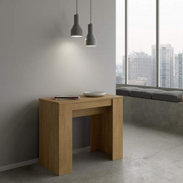 Compatta da chiusa (90 cm di larghezza, 48 cm di profondità, 77 cm di altezza), può estendersi fino a 308 cm, offrendo tutta la superficie necessaria per accogliere amici e familiari in occasione di cene o momenti conviviali.