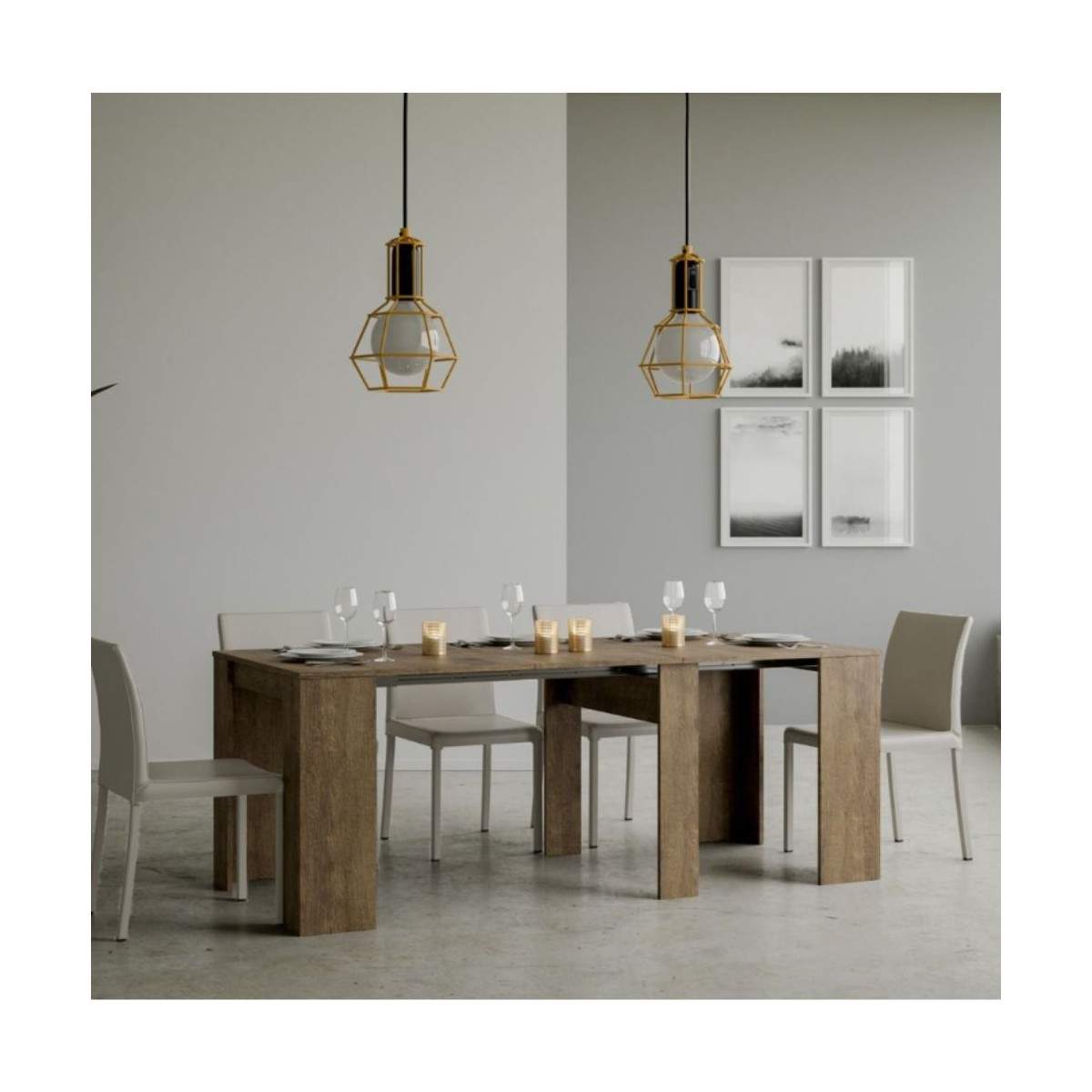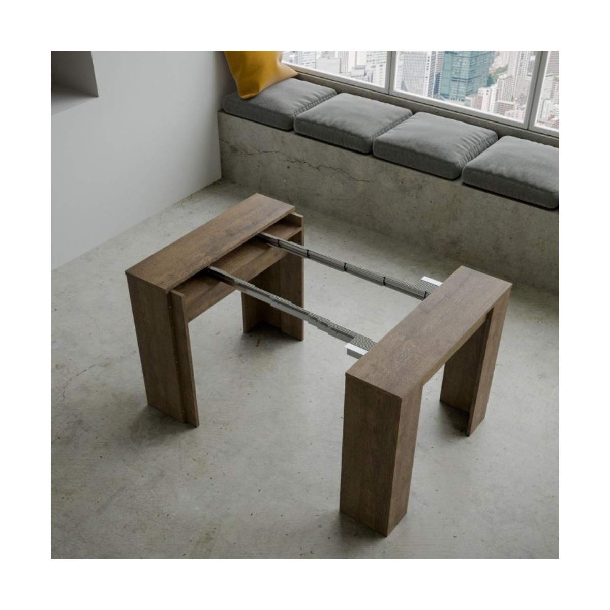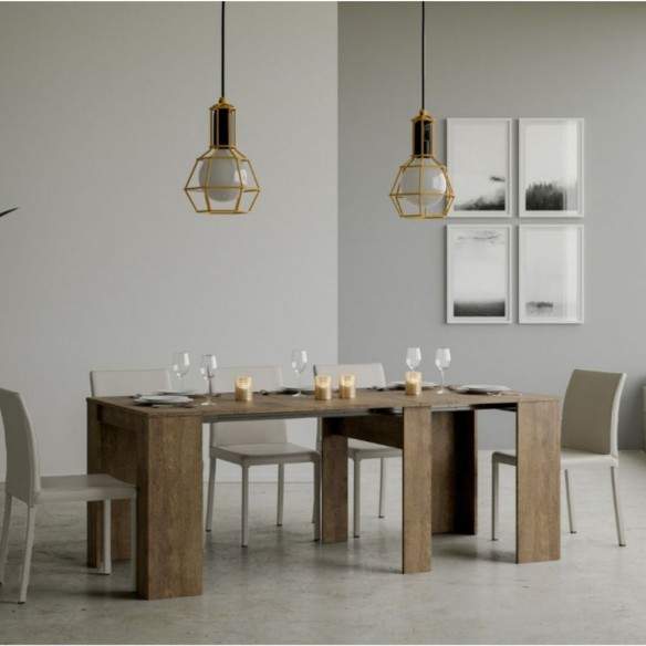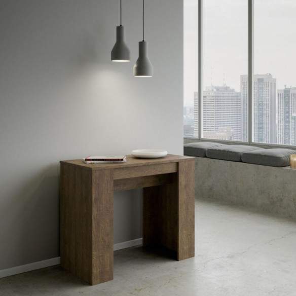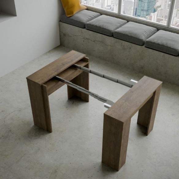Le allunghe devono essere riposte esternamente una volta chiusa la consolle, permettendo alla struttura di mantenere un profilo snello e pulito.