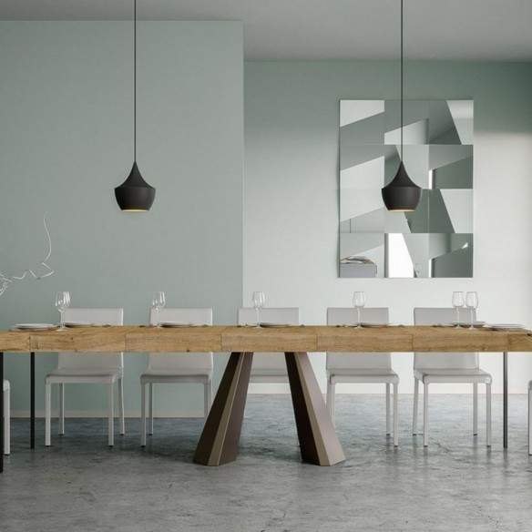 Con dimensioni compatte da chiusa (90x40 cm, altezza 77 cm), è perfetta come consolle d’ingresso, mobile da appoggio o scrivania. Quando serve spazio extra, si trasforma rapidamente in un ampio tavolo da pranzo fino a 300 cm, ideale per ospitare amici e famiglia anche nei momenti più conviviali.