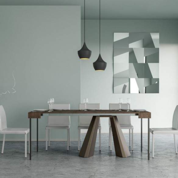 In posizione chiusa, misura 90x40 cm con un’altezza di 77 cm, rendendola perfetta come consolle da ingresso, mobile di servizio o scrittoio. All’occorrenza, grazie al suo meccanismo allungabile, si trasforma in un pratico tavolo da pranzo lungo fino a 196 cm, ideale per accogliere ospiti anche in spazi ridotti.