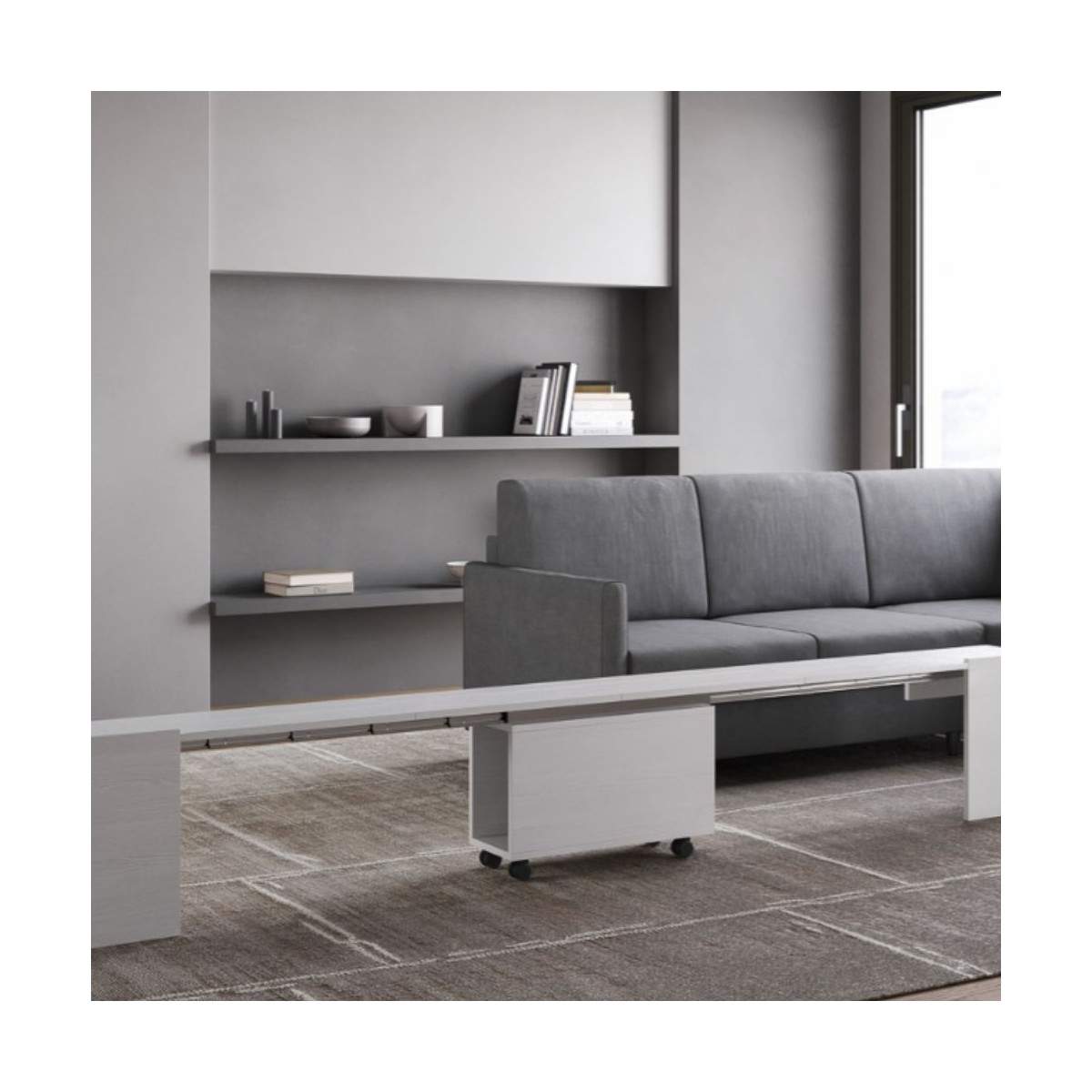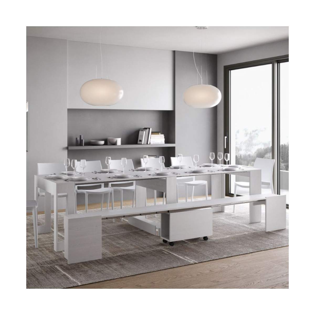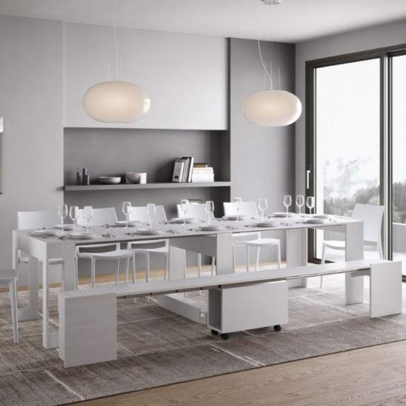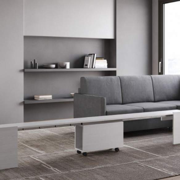 EVOLVE con panca inferiore di Itamoby è la consolle allungabile che rivoluziona il concetto di arredo salvaspazio, unendo estetica essenziale, praticità e una soluzione d’arredo integrata e funzionale.