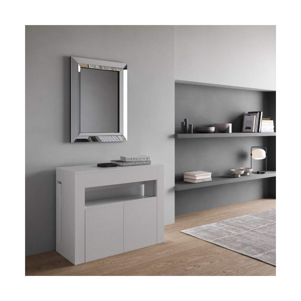 Consolle EVOLVE con panca inferiore in nobilitato.