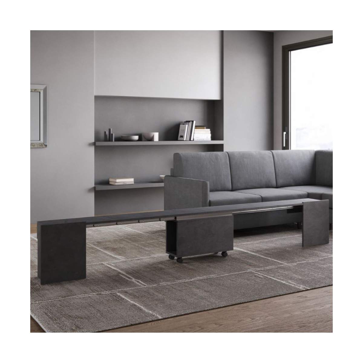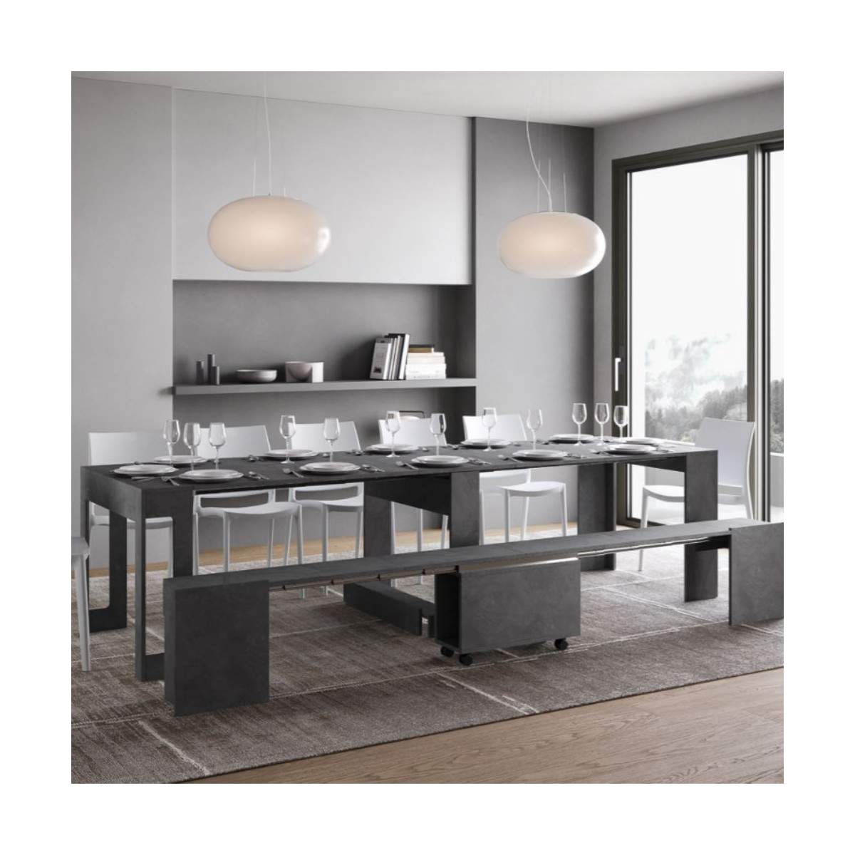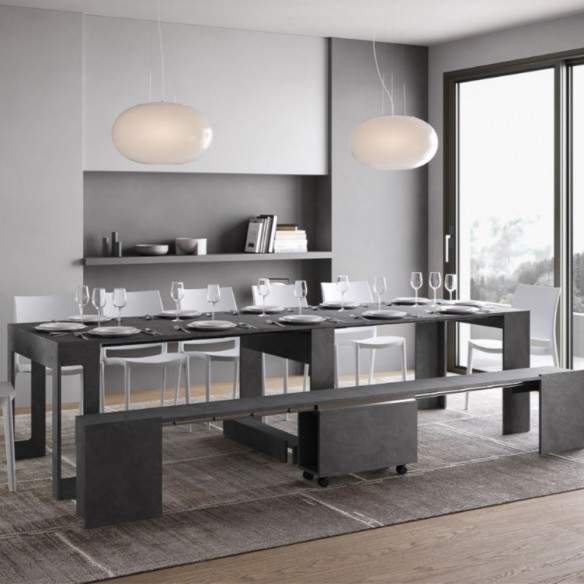 EVOLVE con panca inferiore di Itamoby è la consolle allungabile che rivoluziona il concetto di arredo salvaspazio, unendo estetica essenziale, praticità e una soluzione d’arredo integrata e funzionale.