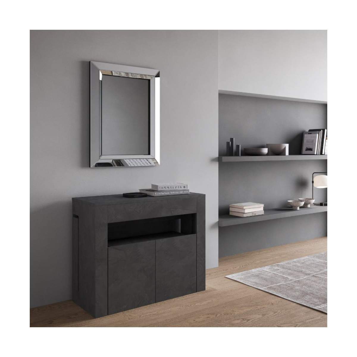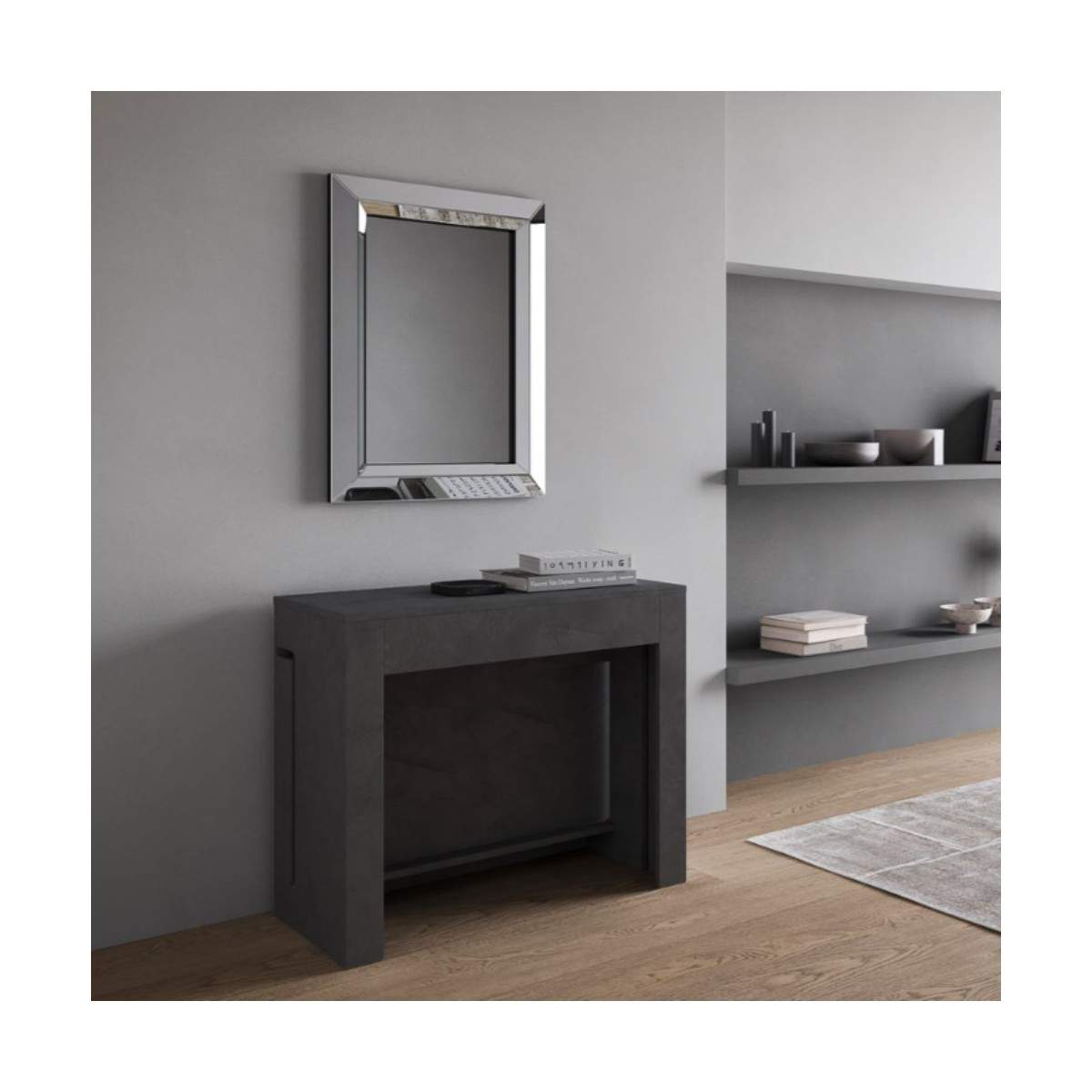 Realizzata interamente in nobilitato resistente, questa consolle è disponibile in tre finiture eleganti — Antracite, Quercia e Bianco — per adattarsi con stile a qualsiasi ambiente, dal più moderno al più accogliente.