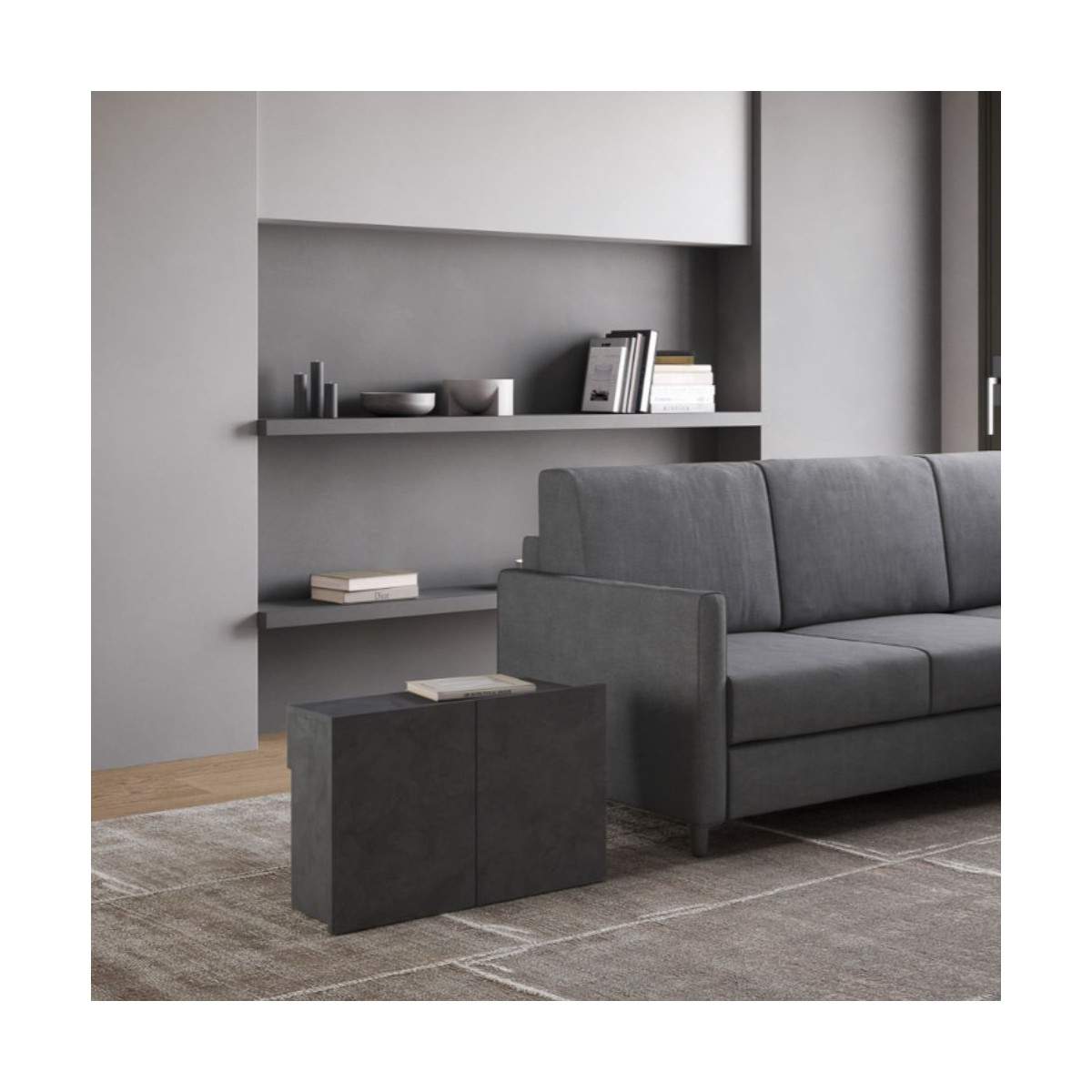 Con EVOLVE con panca, porti in casa un arredo trasformabile, intelligente e dal design impeccabile, perfetto per chi vuole vivere lo spazio in modo flessibile e raffinato.