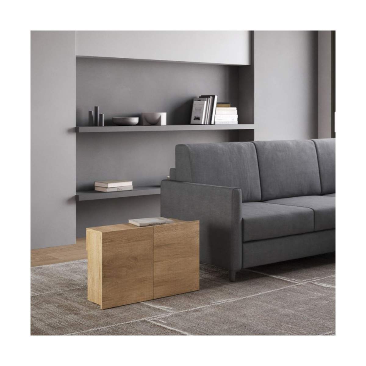 Con EVOLVE con panca, porti in casa un arredo trasformabile, intelligente e dal design impeccabile, perfetto per chi vuole vivere lo spazio in modo flessibile e raffinato.
