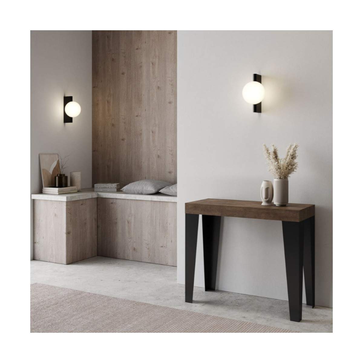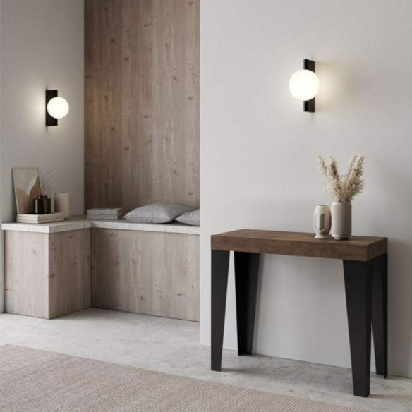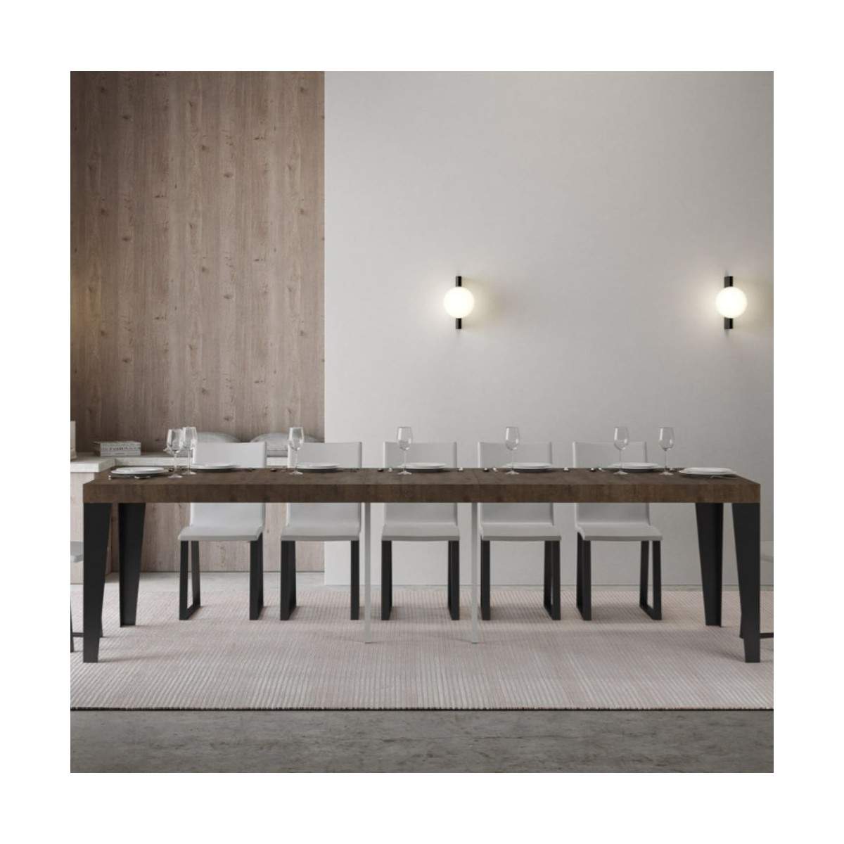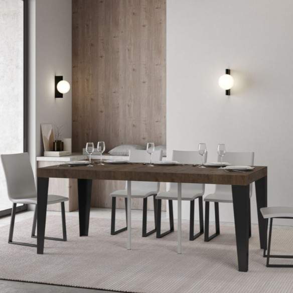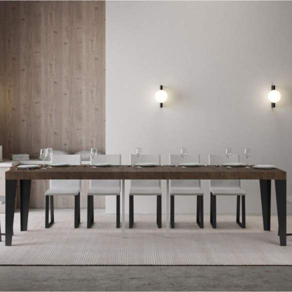 Compatta nelle dimensioni (90x40 cm, altezza 77 cm), si trasforma con semplicità in un ampio tavolo lungo fino a 300 cm, perfetto per accogliere amici e famiglia o per adattarsi a situazioni di lavoro e studio.