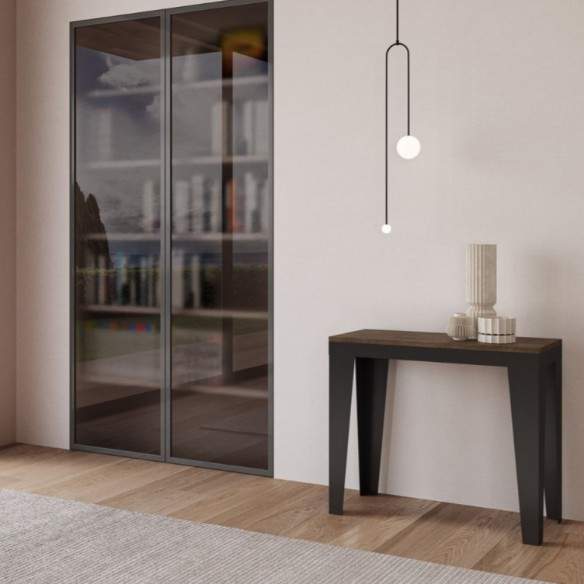 Consolle FLAME SMALL EVOLUTION con struttura in metallo antracite e piano in nobilitato.