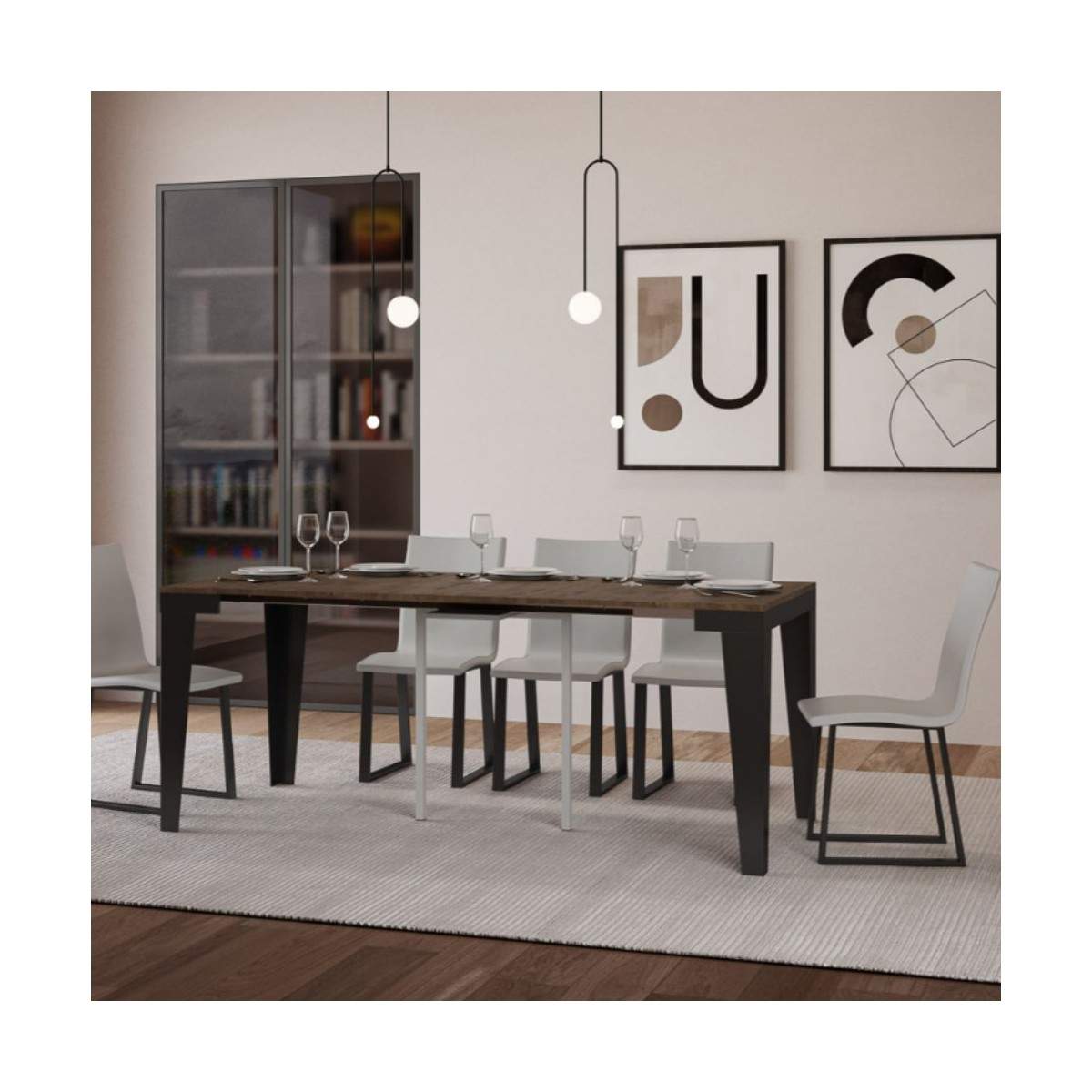 Le allunghe non sono contenute nella struttura e vanno riposte separatamente, un dettaglio che permette di preservare la forma compatta e ordinata della consolle quando non estesa.