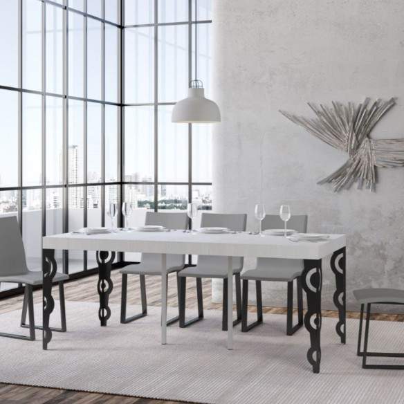 Compatta da chiusa (90x40 cm, altezza 77 cm), si trasforma in pochi gesti in un pratico tavolo allungabile fino a 196 cm, ideale per ospitare amici o parenti in occasione di cene e momenti conviviali. Le allunghe, da riporre esternamente quando non utilizzate, rendono l’apertura semplice e intuitiva.
