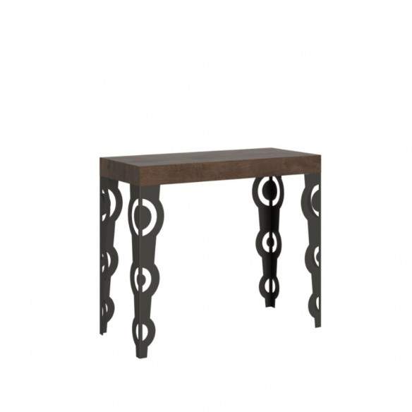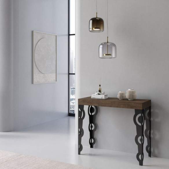 Compatta da chiusa (90x40 cm, altezza 77 cm), si trasforma in pochi gesti in un pratico tavolo allungabile fino a 196 cm, ideale per ospitare amici o parenti in occasione di cene e momenti conviviali. Le allunghe, da riporre esternamente quando non utilizzate, rendono l’apertura semplice e intuitiva.