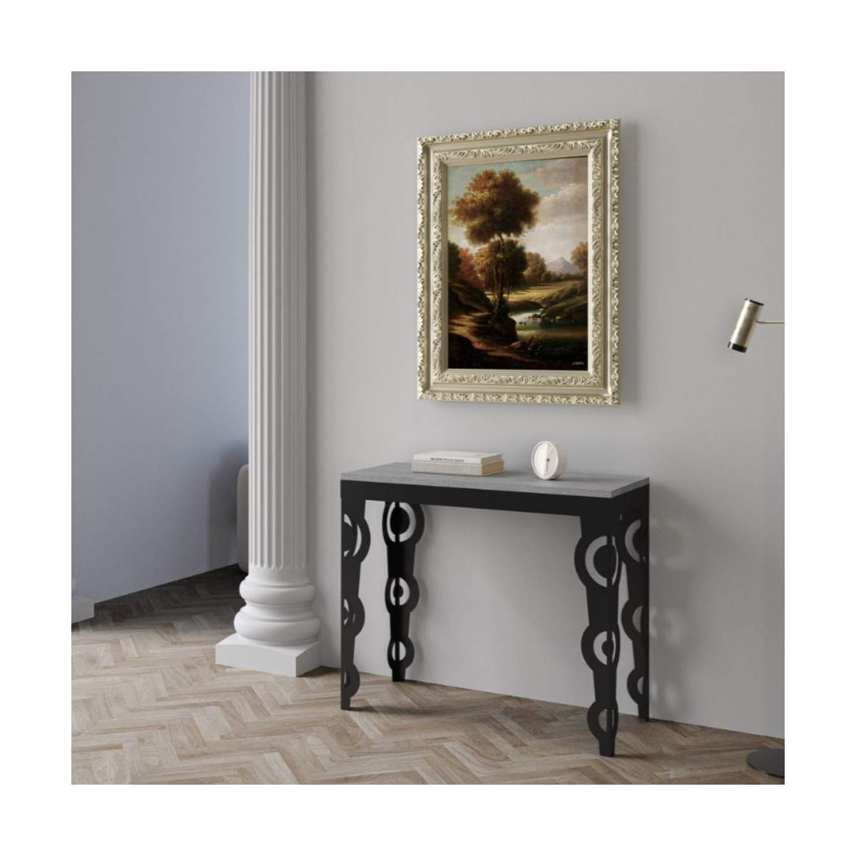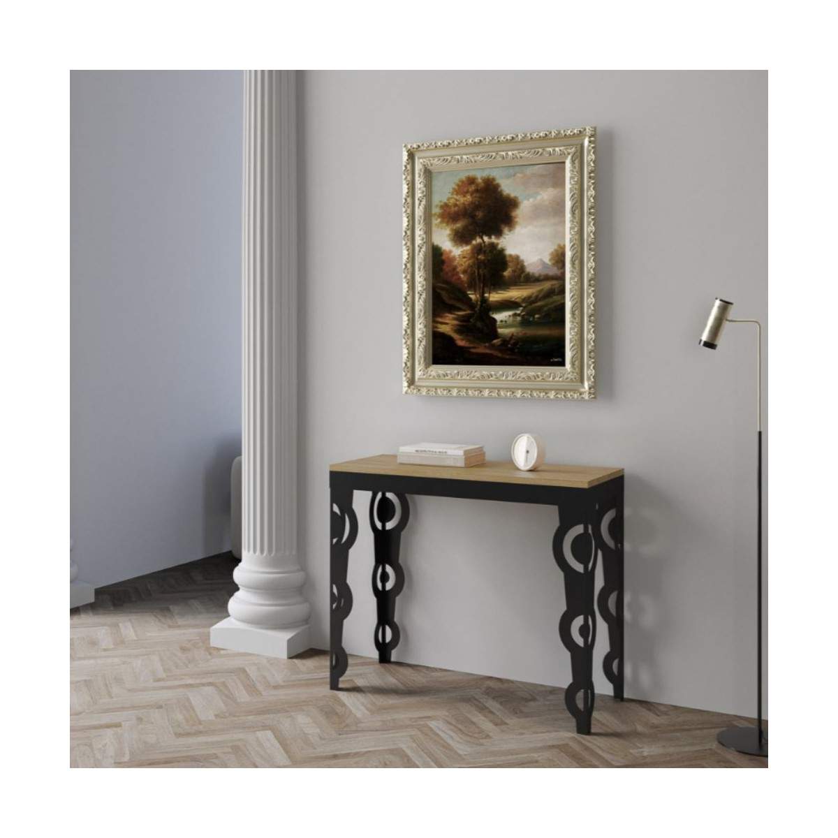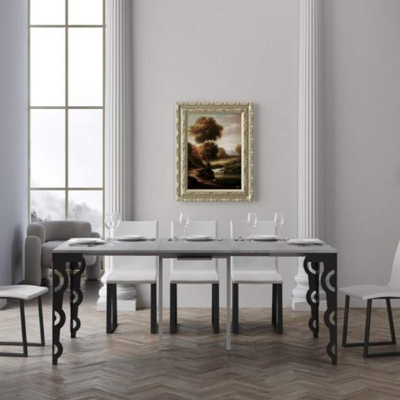 La consolle KARAMAY SMALL EVOLUTION di Itamoby è l'incontro perfetto tra estetica industriale e funzionalità estesa. Caratterizzata da una struttura in metallo antracite solida e moderna e da un piano in nobilitato disponibile nelle finiture Noce, Cemento, Quercia e Bianco, si adatta con naturalezza a ogni ambiente, dal living contemporaneo alla zona pranzo minimalista.