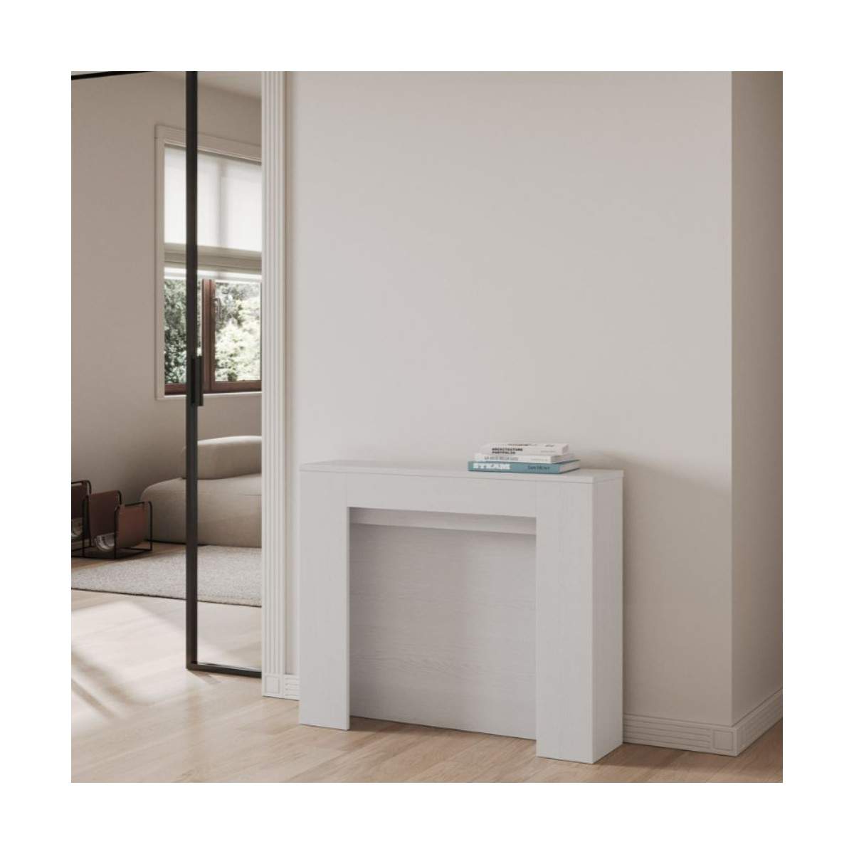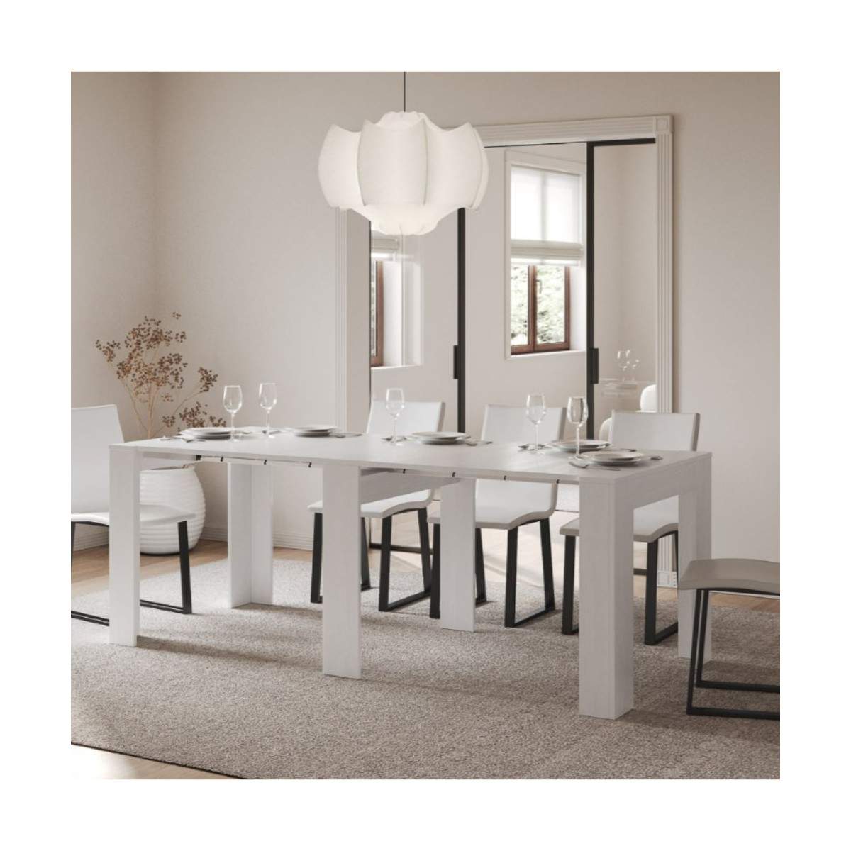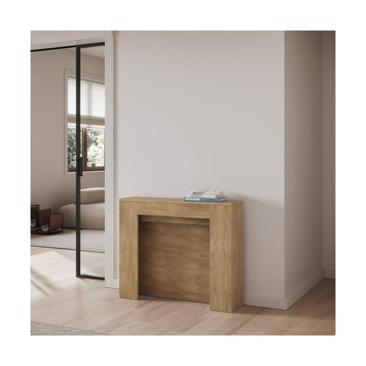 Il suo punto di forza? La praticità del sistema di estensione: le allunghe da 62×86 cm trovano posto direttamente all’interno della struttura della consolle, così non dovrai mai preoccuparti di dove riporle. Tutto è a portata di mano, in perfetto ordine.
