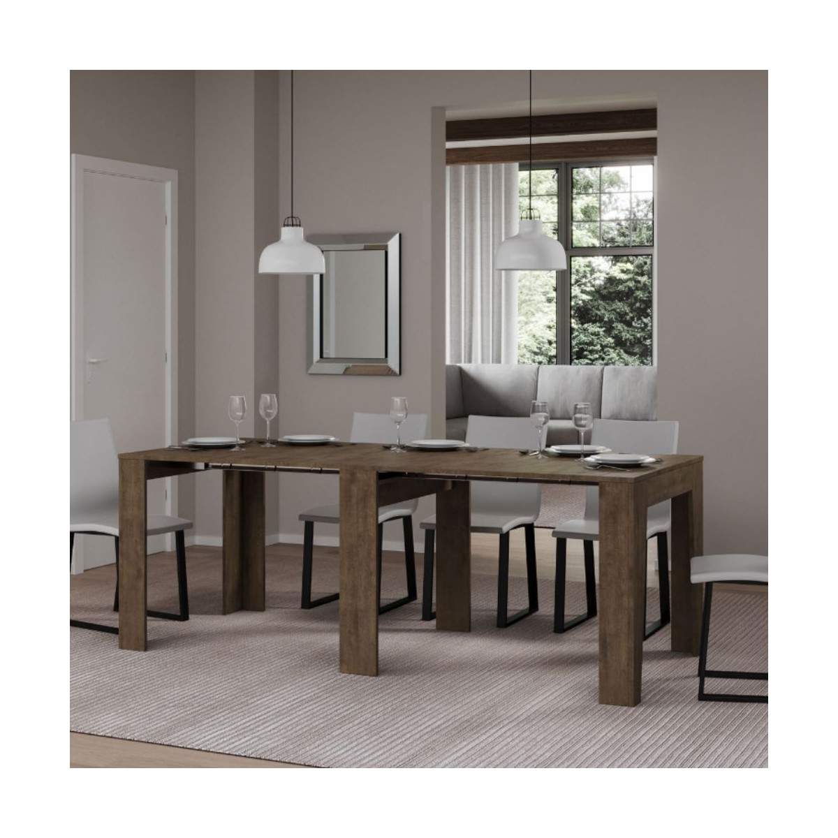 Le allunghe, una volta chiusa la consolle, devono essere riposte altrove, permettendo di mantenere l’ingombro ridotto e l’aspetto sempre ordinato.