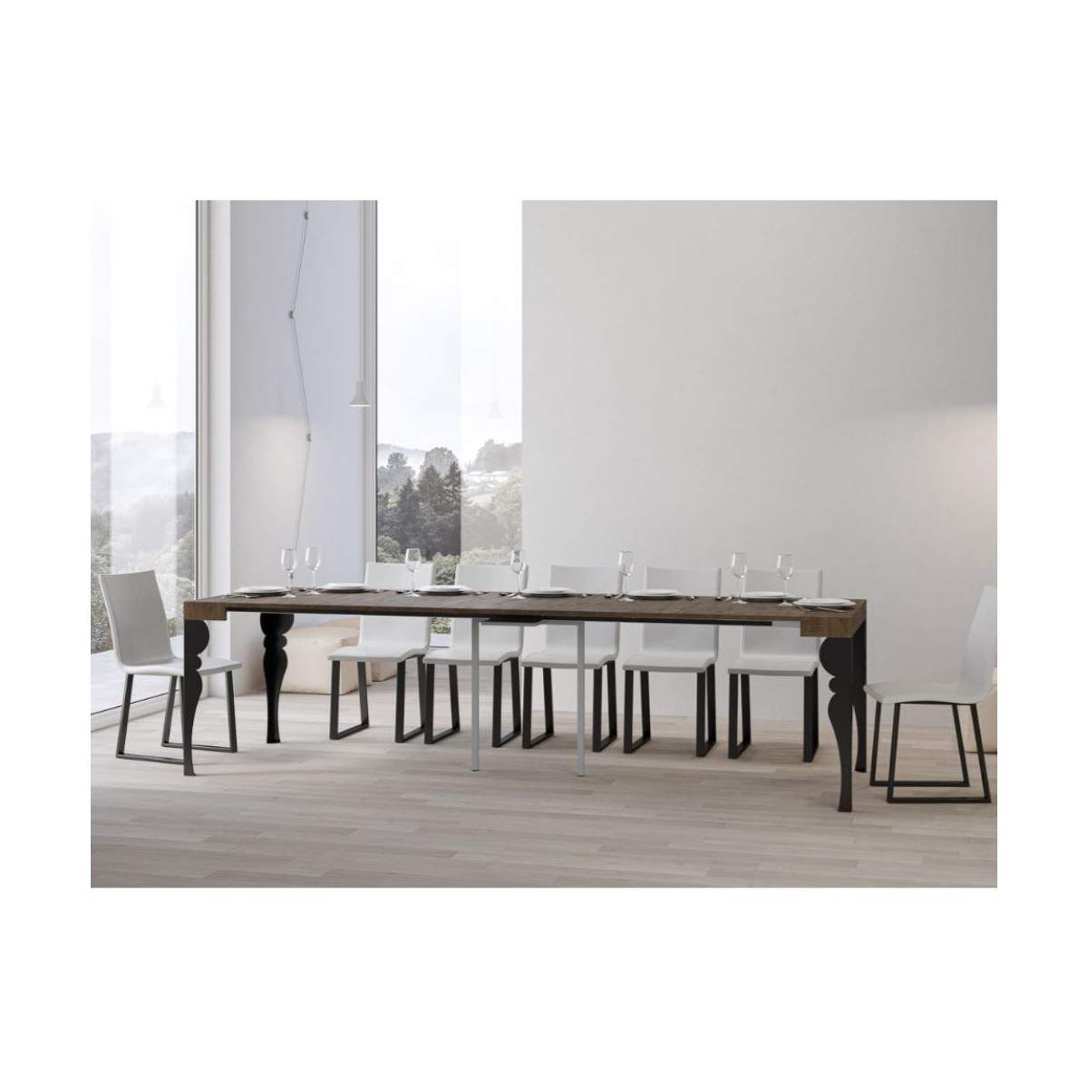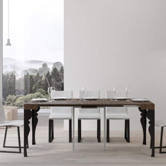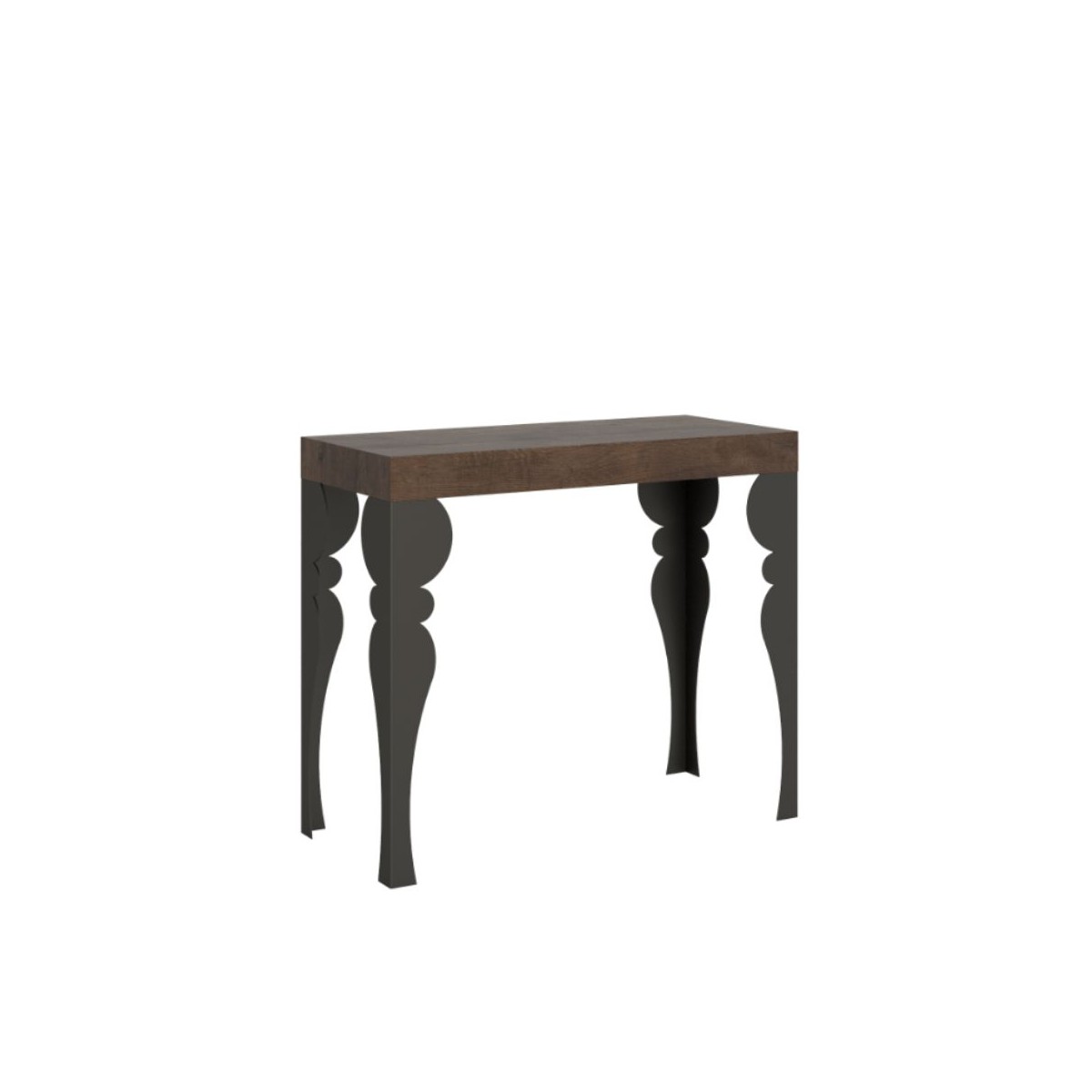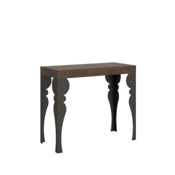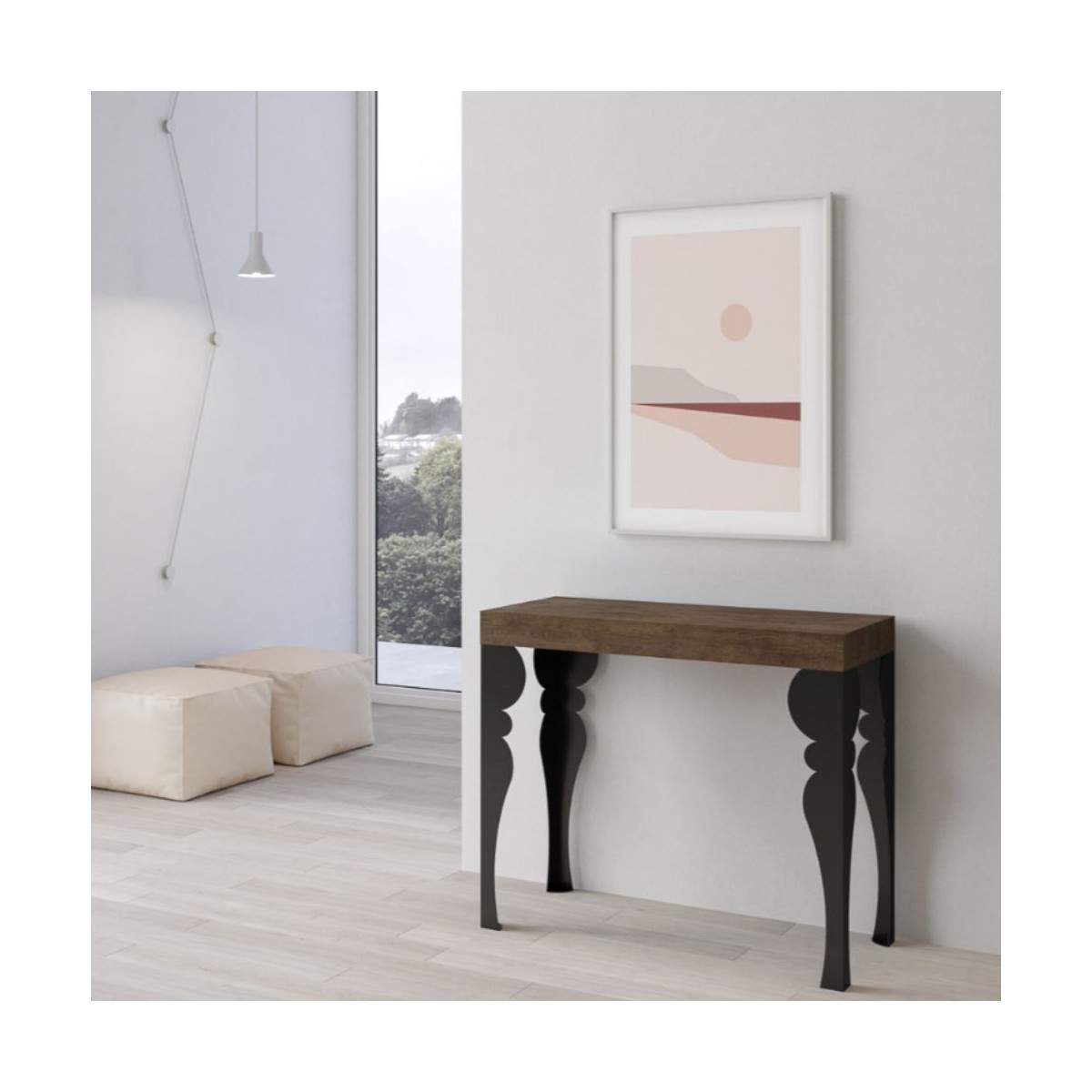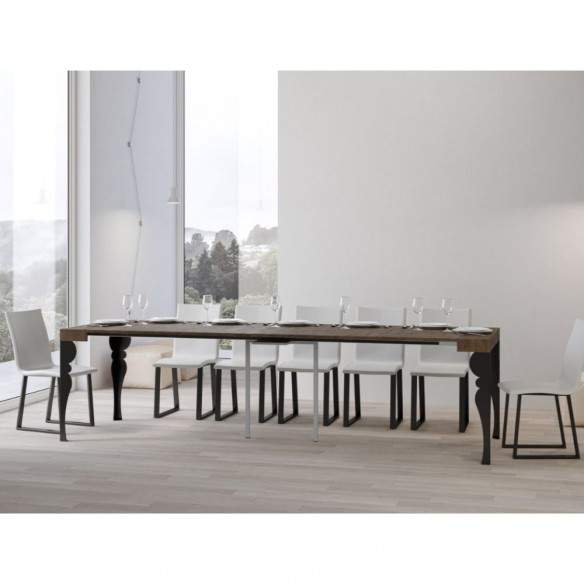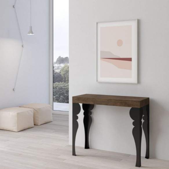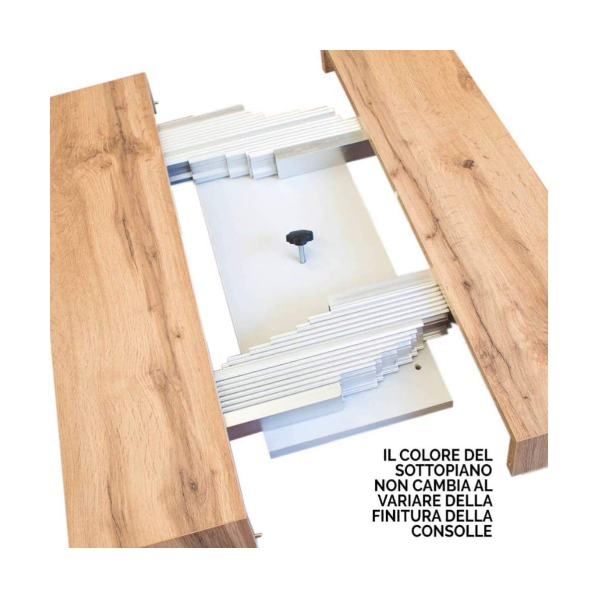 Da chiusa, la consolle misura 90 cm di larghezza, 40 cm di profondità e 77 cm di altezza, risultando discreta e perfetta come appoggio o mobile d'ingresso. All’occorrenza, grazie al suo meccanismo allungabile, si estende fino a 300 cm, diventando un pratico tavolo da pranzo capace di ospitare comodamente fino a 12 persone.