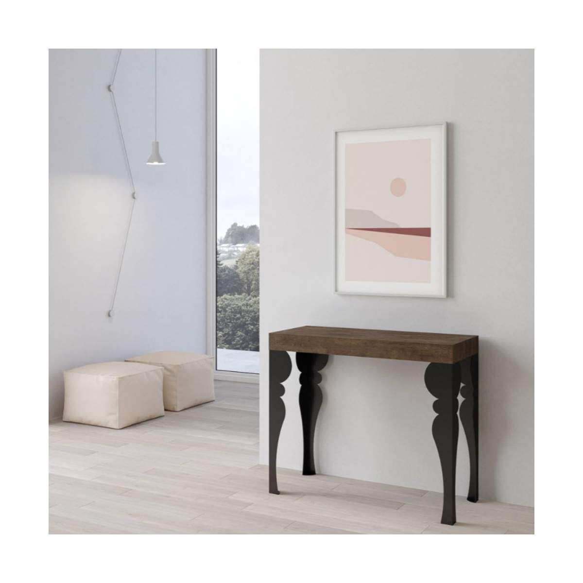 Pensata per chi ha bisogno di funzionalità senza sacrificare l’estetica, da chiusa misura 90x40 cm, ma allungandola arriva fino a 196 cm, trasformandosi in un comodo tavolo da pranzo. Le allunghe, da conservare separatamente, permettono di adattare la consolle a ogni esigenza, dalla colazione quotidiana alle cene con ospiti.