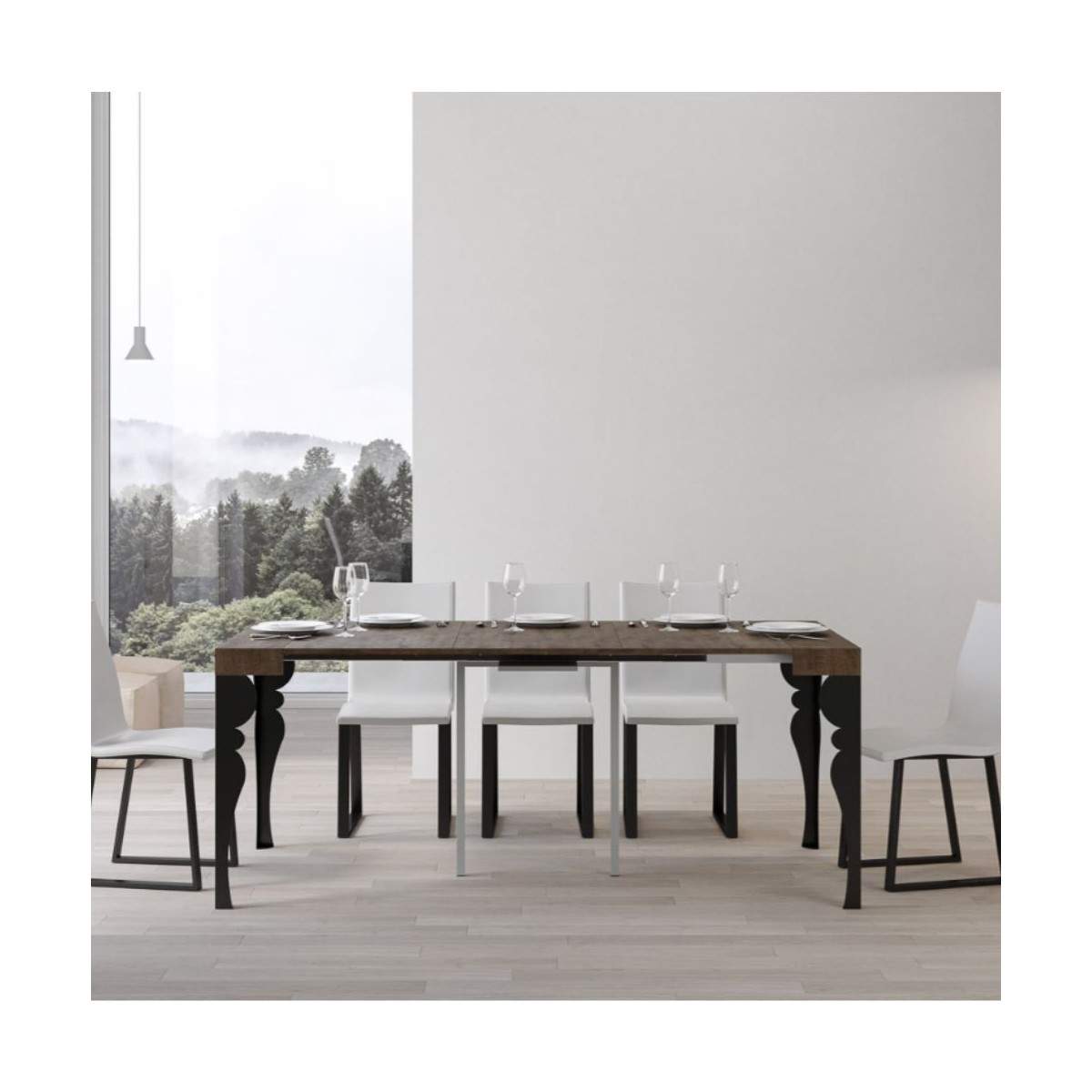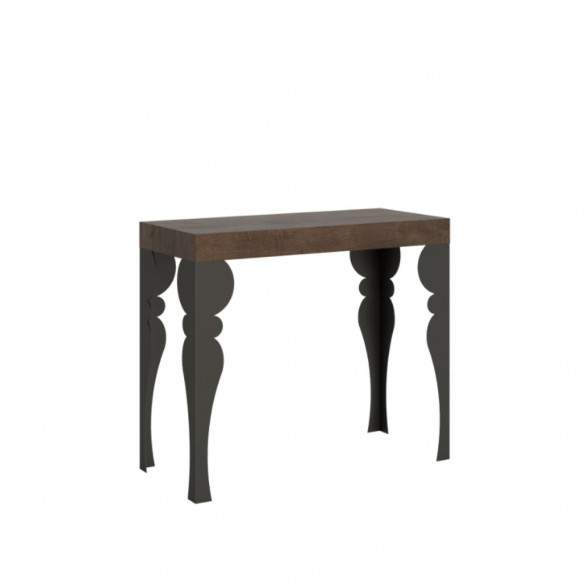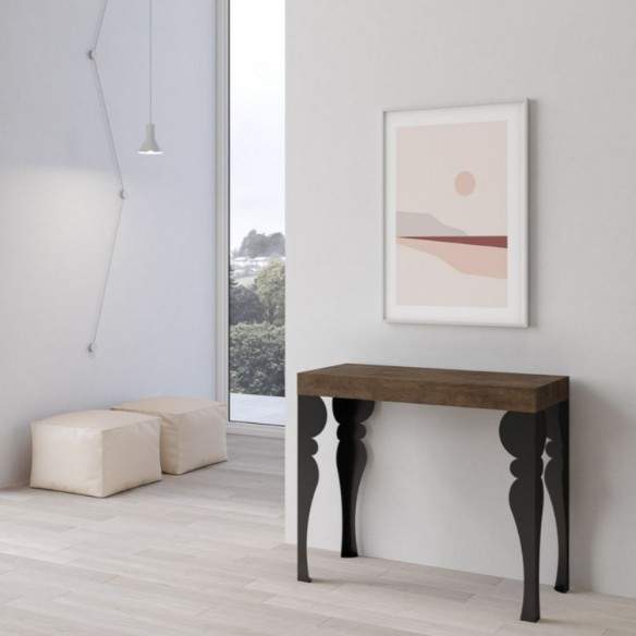 Perfetta per piccoli spazi, da chiusa misura solo 90x40 cm, ma all’occorrenza si apre con semplicità fino a 196 cm, trasformandosi in un pratico tavolo da pranzo per ospitare amici o familiari. Le allunghe, da riporre esternamente, assicurano stabilità e versatilità.