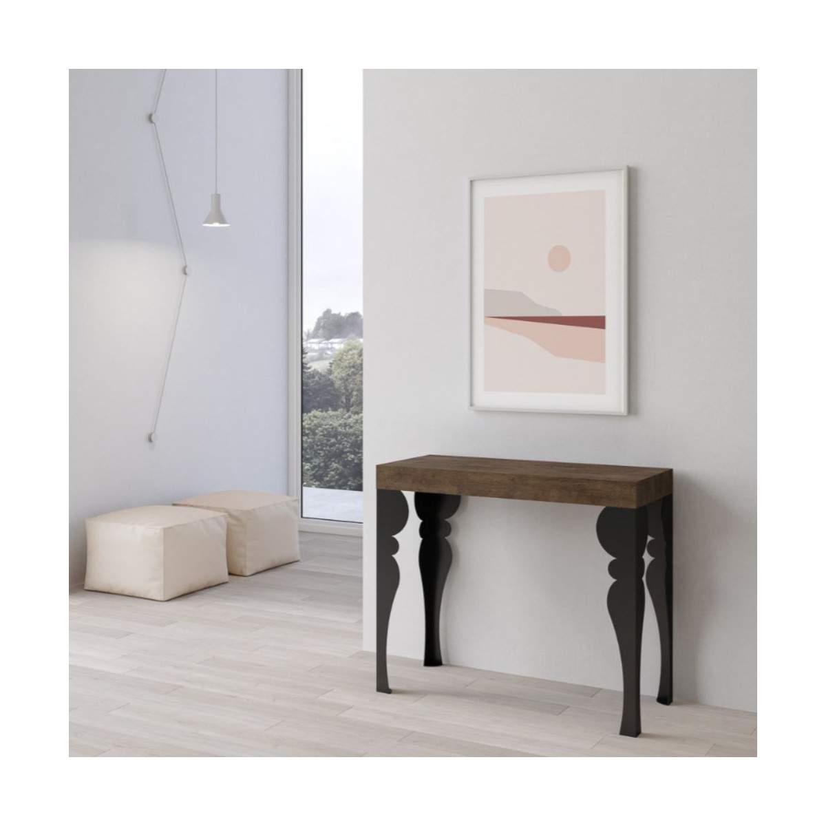 Le allunghe vanno riposte esternamente una volta chiusa, ma l’ampia versatilità della consolle la rende perfetta per chi vive in piccoli spazi e desidera sfruttarli al meglio, senza rinunciare allo stile. Un complemento intelligente, pratico ed esteticamente impeccabile.