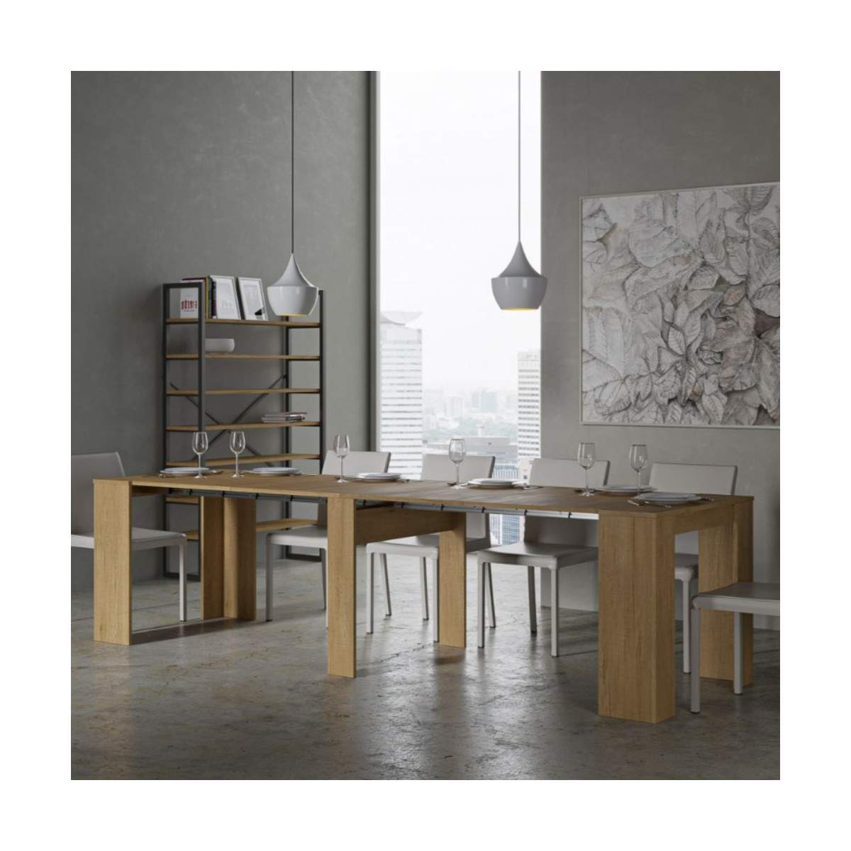 Una volta che la consolle è chiusa, le allunghe da 62×86 cm trovano posto all’interno della struttura della consolle.