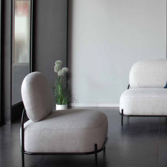 Poltrona LARKING con struttura in metallo verniciato nero e seduta in tessuto grigio.